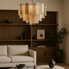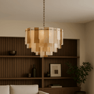 Azzura Small Diamond Etched Glass Gold Chandelier