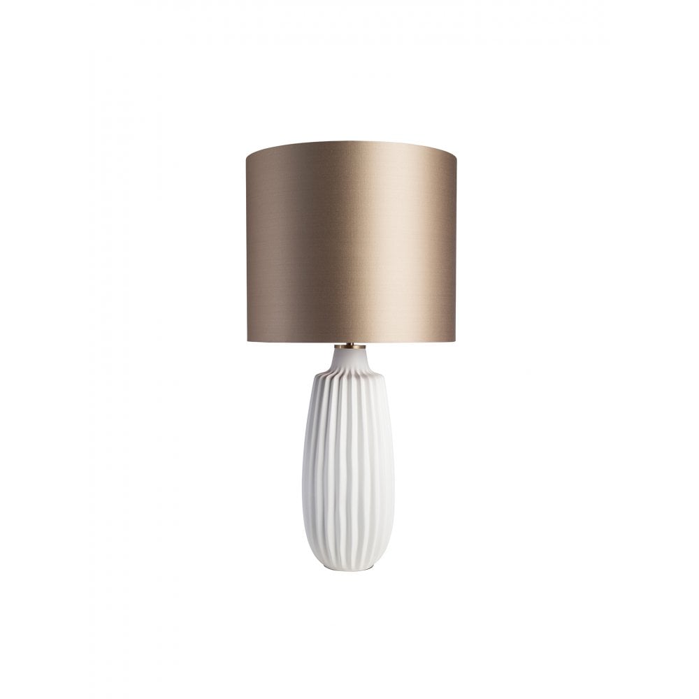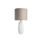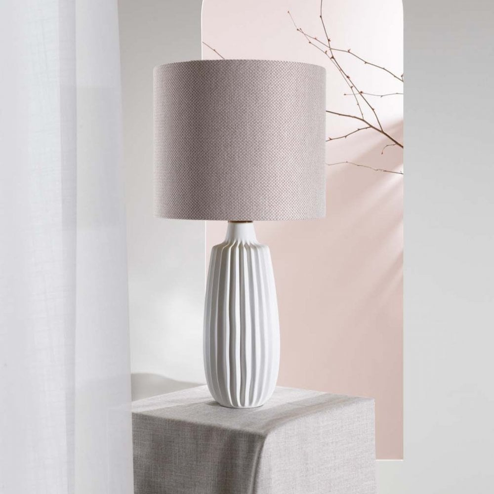 Finished in pure white, the petal like structure of our Cedar table lamp is beautifully tapered from the base to create a deeply tactile form. Each soft ridge runs vertically, allowing light to fall and create unique contrasts and shadows across the ceramic.