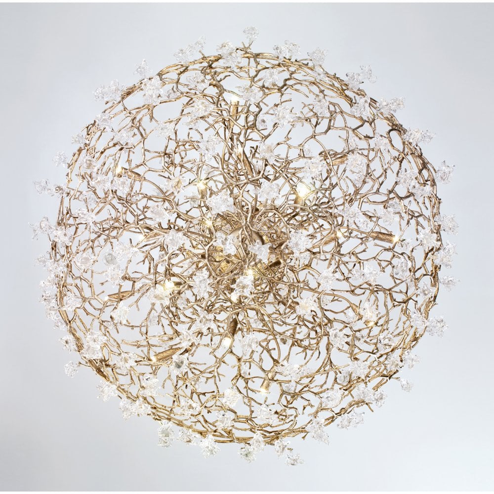 Inspired by the beauty and natural complexity of coral reef shapes, the Coral Collection stands as a dense structure of intertwined metal branches aiming for a faithful representation of its nature and visual impact. The glass pieces fall into the glimpse of marine organisms in a visual combination of great impression. Dense and robust, this collection integrates a complex system of detail aiming for a differential presence. Ideal for areas of extensive height and open for complex patterned details.