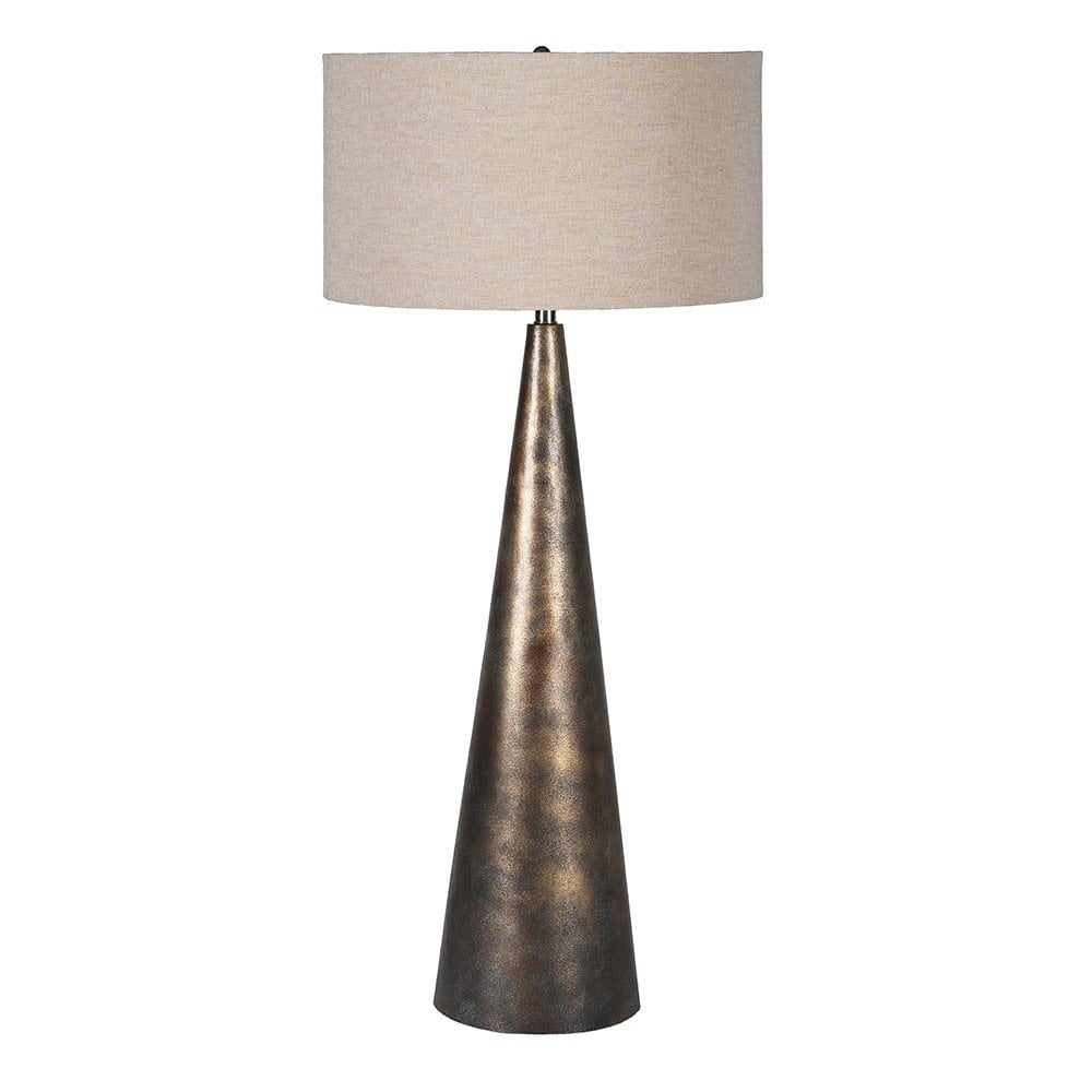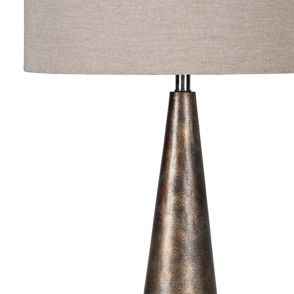 The Cosmic Gold Metal Floor Lamp is a striking, contemporary piece that exudes understated luxury. Tall and elegantly conical in shape, its sculptural metal base is finished in a rich brushed, textured gold, adding warmth and sophistication to any interior. The design is perfectly complemented by a natural linen shade, which softens the light to create a calm and inviting ambience. Ideal for living rooms, bedrooms, or reading corners, this floor lamp brings height, texture, and a touch of modern glamour to your décor.