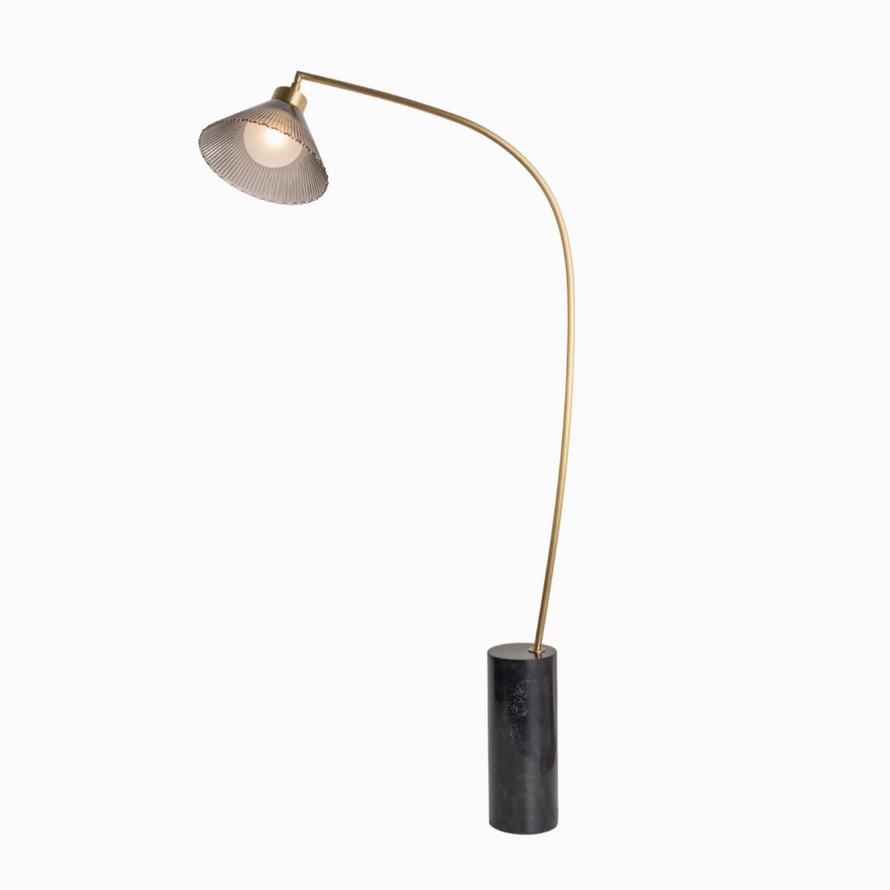 The Daisy floor lamp combines elegance and versatility. The Art-Deco inspired fluted glass shade stands proudly on sleek Satin Brass metalwork, anchored by a Black Carrara marble base. The adjustable glass is hand-finished to ensure that each design is truly unique and the pivot at the head allows for directed lighting to suit any mood or task.