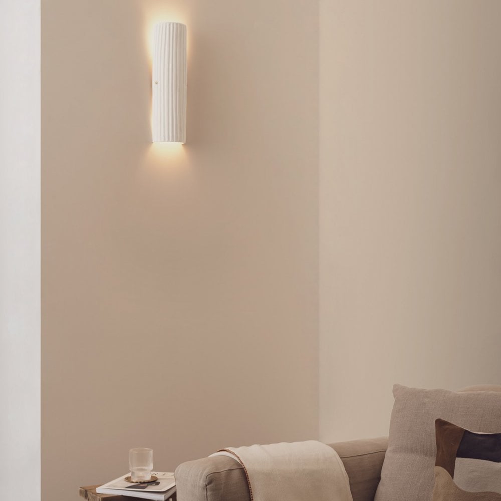 Our new Dori wall light presents an honest sense of earthiness. The rough surface finish of the ceramic is achieved by carefully controlling the temperate in the kiln during firing. This charming texture and the deep ridges that run from top to bottom, create a homely sense of tactility and warmth.