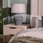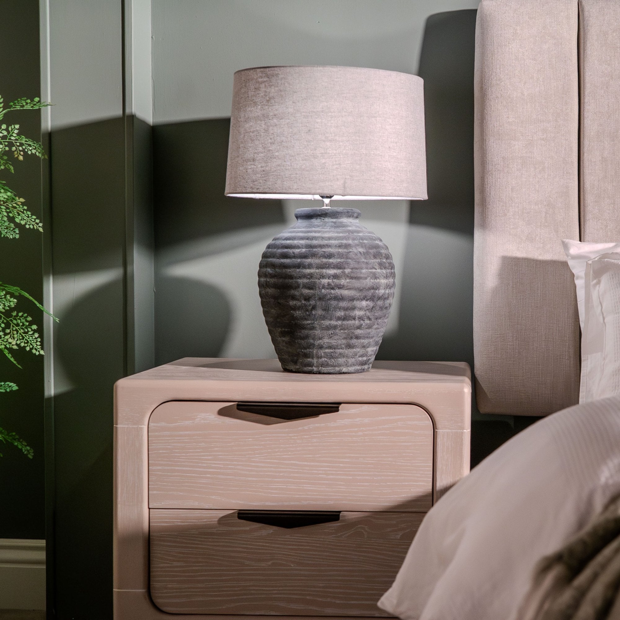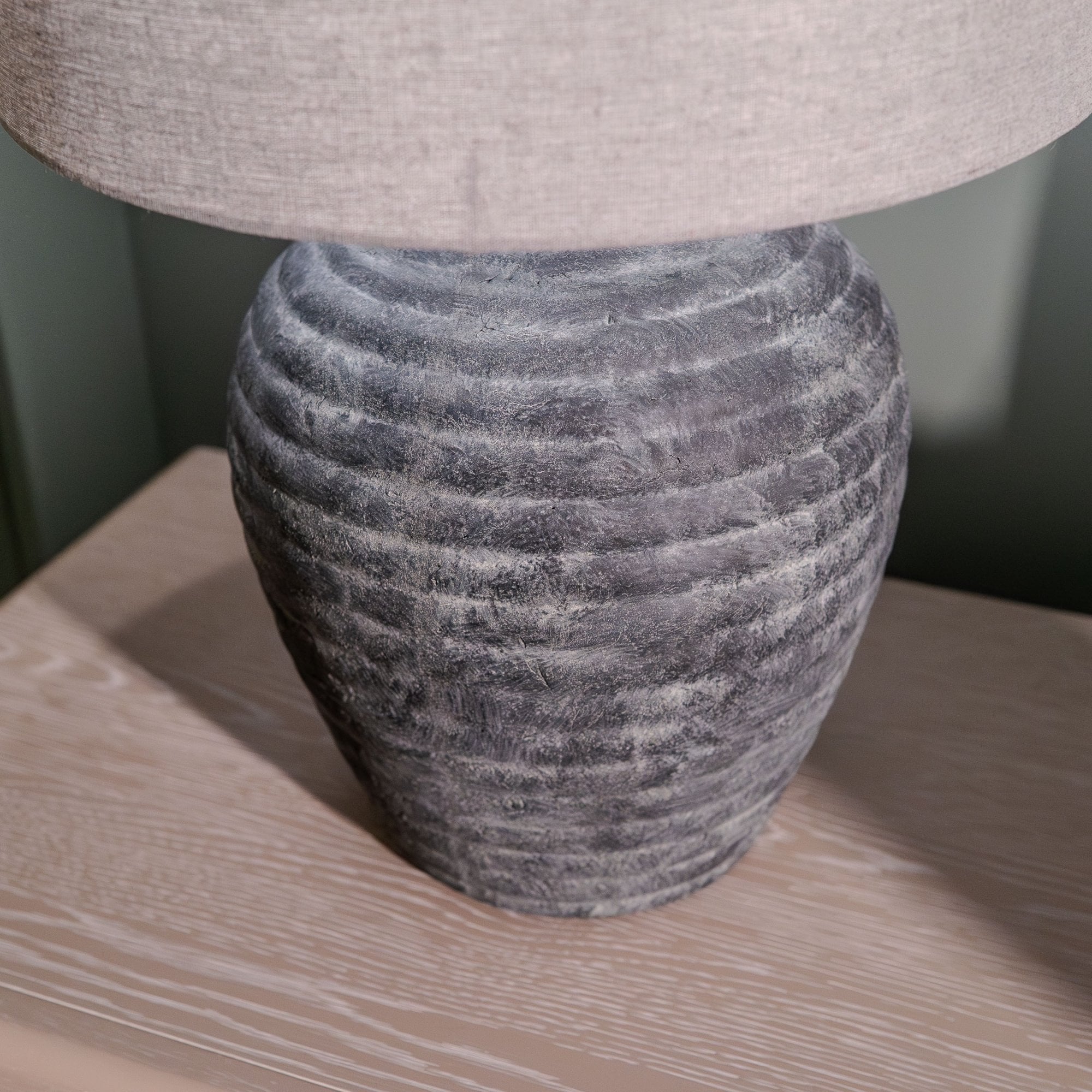 The Franz Lamp is a statement piece that will elevate any room with its large, stone design in a sleek grey and blue finish. Coupled with a grey shade, it adds a touch of sophistication to any space. Perfect for those looking for a bold and elegant lighting solution.