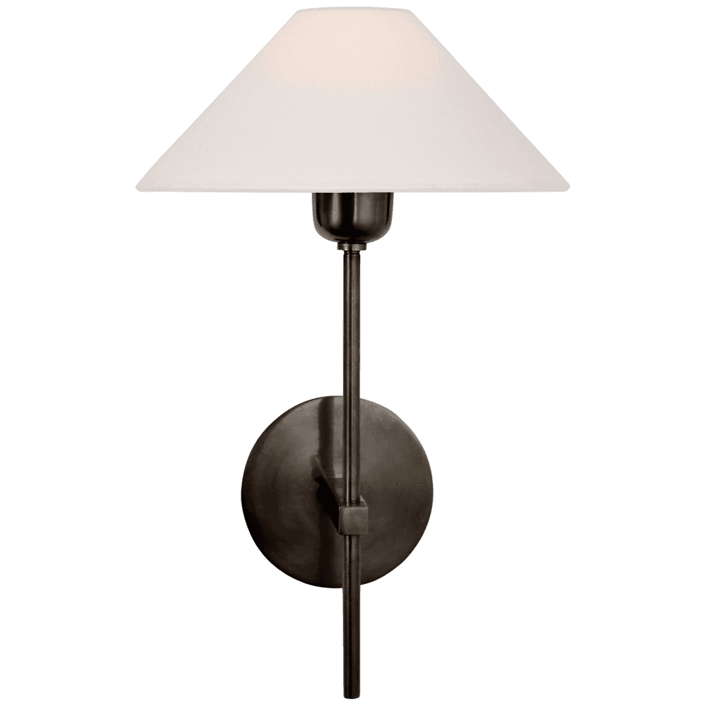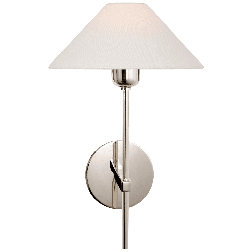 Hackney Polished Nickel Single Wall Light with Linen Shade
