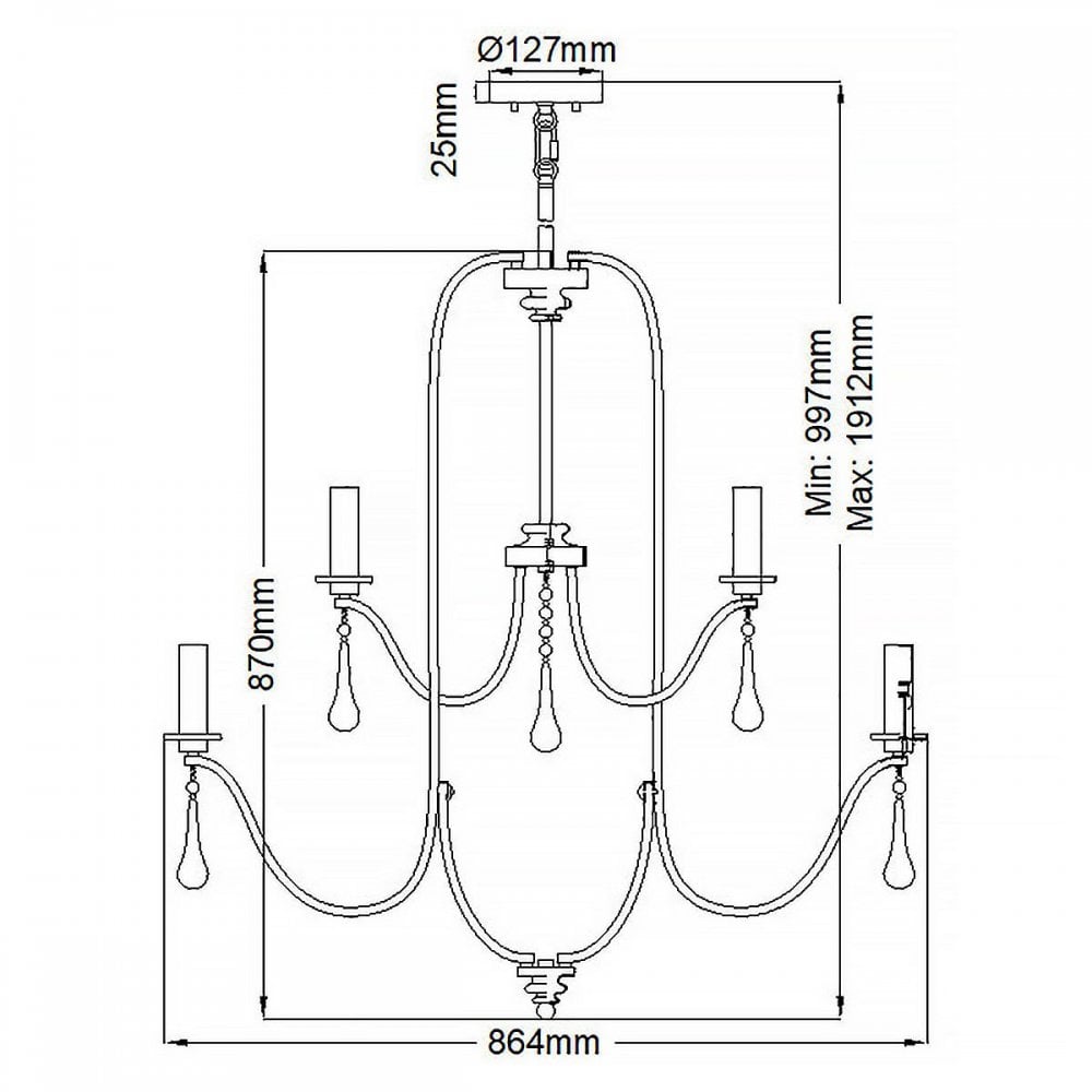 Karlee Classic Pewter Chandelier 5 Light