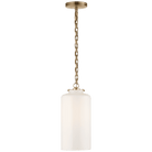 The Katie Large Cylinder Pendant Light by Thomas O’Brien for Visual Comfort combines timeless design with modern functionality. Crafted from hand-rubbed antique brass, this pendant light features a cylindrical white glass shade that emits a soft, diffused glow, making it ideal for creating a warm ambiance in various settings.