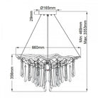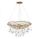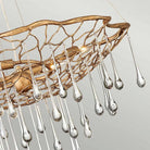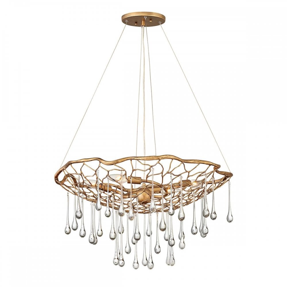 Imagine a net gently breaking the surface, then slowly emerging with a cascade of water droplets trickling through and shimmering with light. Laguna designed by Lisa McDennon for Hinkley uses a hand-made open framework design in Brushed Gold as the foundation in this artistic interpretation. Clear glass droplets fall at varying lengths, casting the light. Minimal hanging wires ensure the net itself appears to float, as a candle cluster emits light from within.