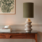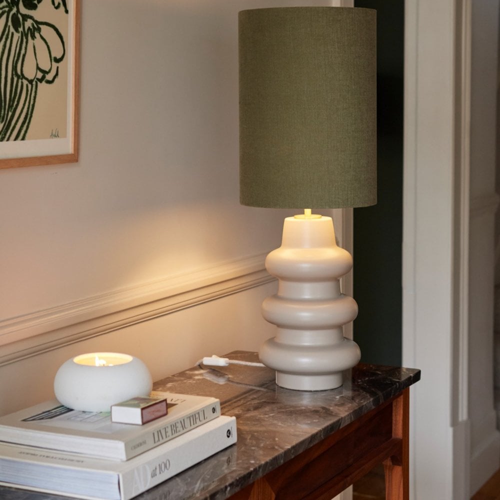 Inspired by a retro-inspired vase shape, the Lila table lamp features three curved rings. The Terracotta base has a rough finish to mimic the texture of the material in its natural state, the Stone finish is semi-matt, while the Green base is finished in a high-gloss coating. With an earthy colour palette, inspired by nature, Lila will complement a wide range of interior decor styles.