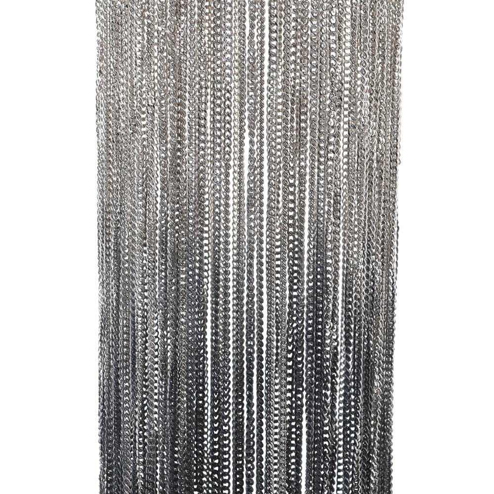 This statement pendant features a black base and ombre style chain fading from Silver to Black. Illuminated by a single bulb at the top of the pendant this light creates a stunning light effect. Perfect for bedside pendants or clustered in groups for a statement hallway light.