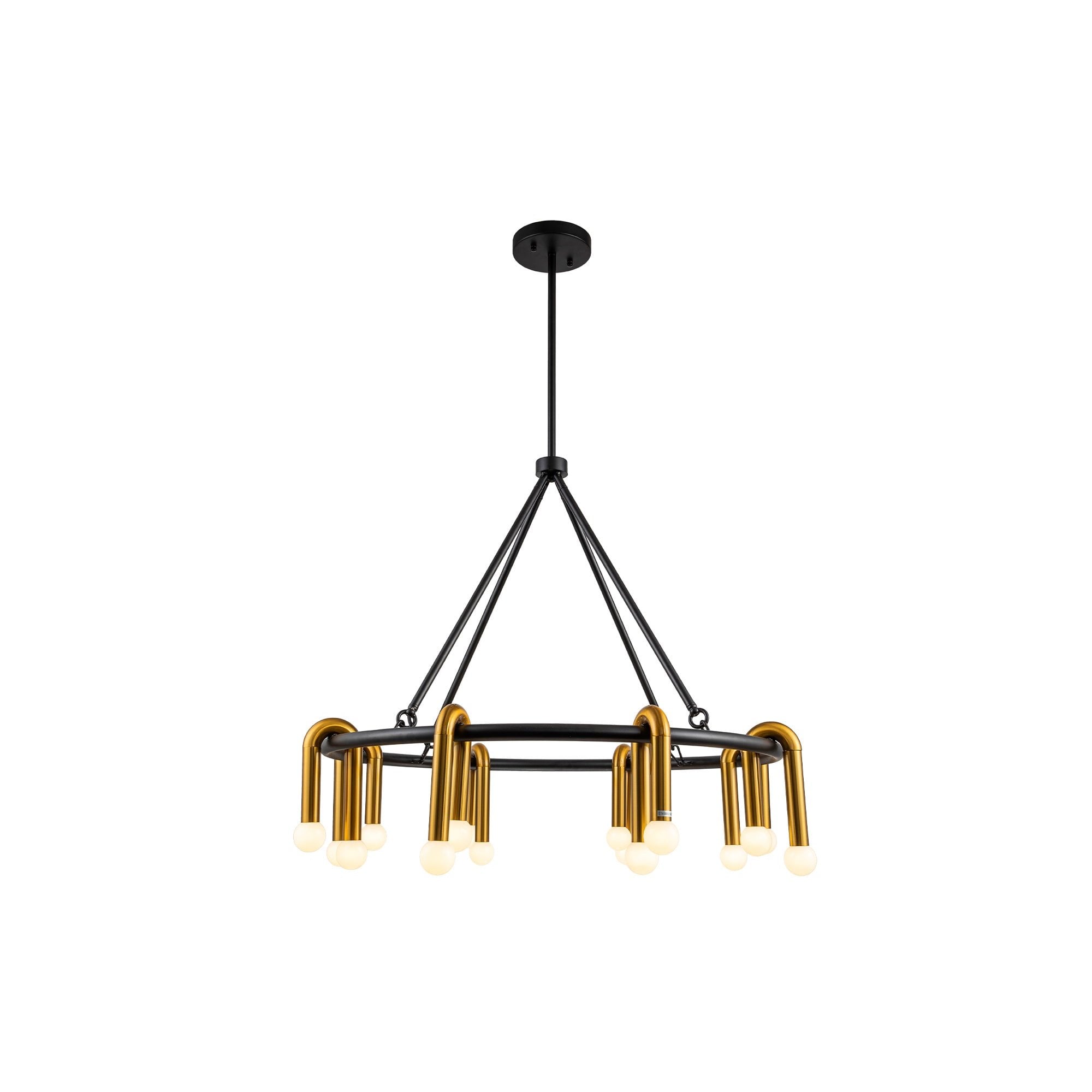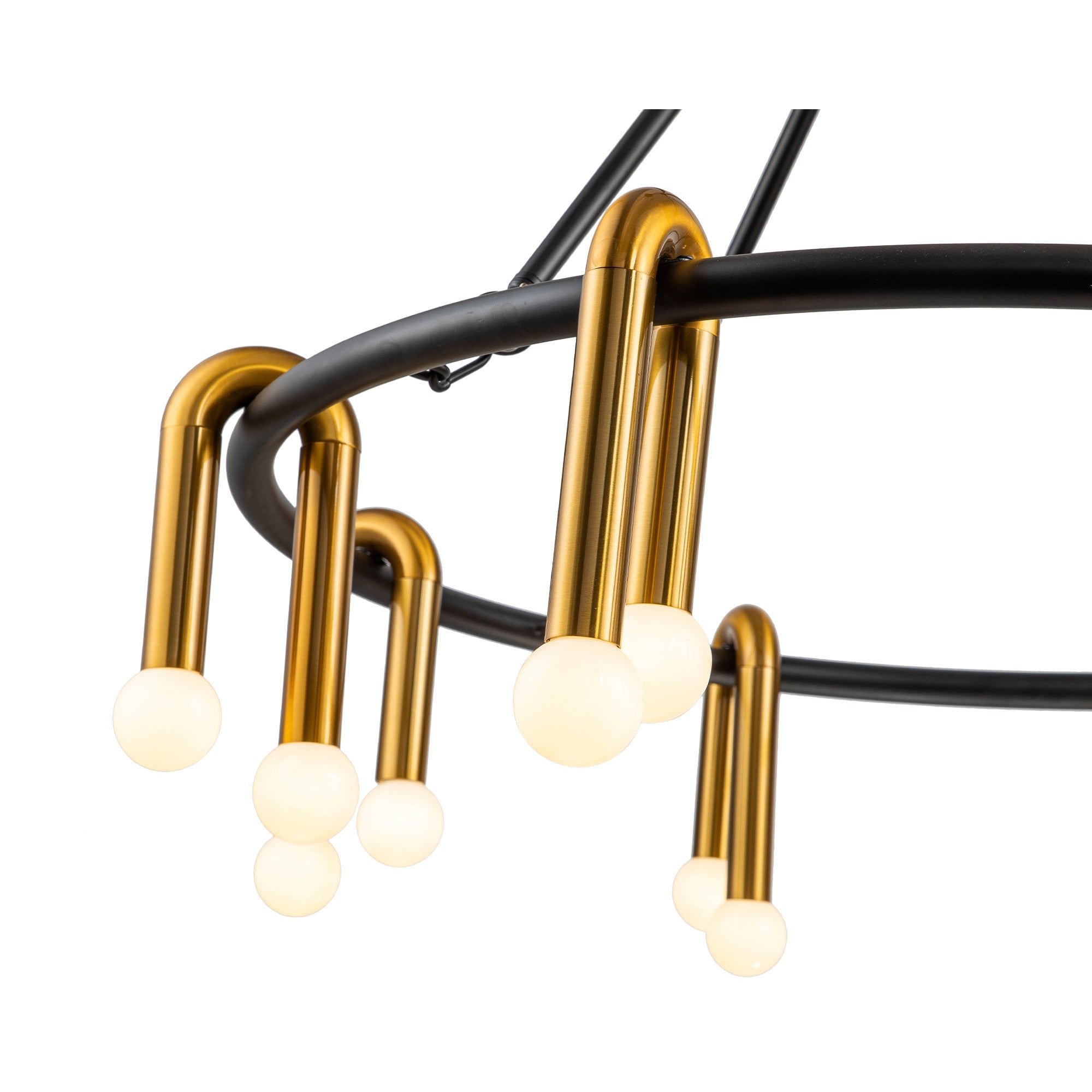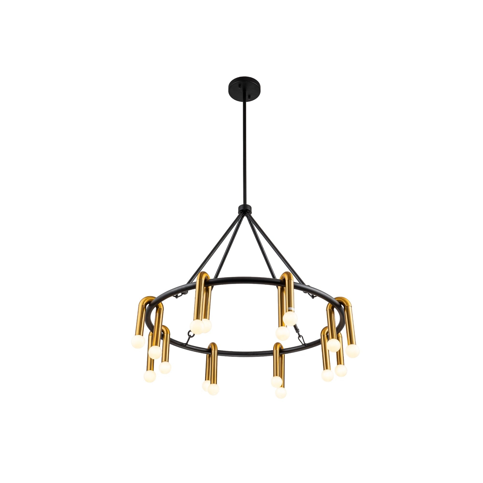 The Melt 1 Pendant Lamp seamlessly combines matt black metal, brushed brass, and white glass to create a serene, elegant atmosphere. Its striking shape features smooth curves that beautifully contrast with bold colours, making it a standout piece. Ideal for both residential and hospitality settings, it redefines your space with sophistication. (Light bulbs not included; requires 16 x E14, max 40W. For dimming, use dimmable bulbs and switches.)