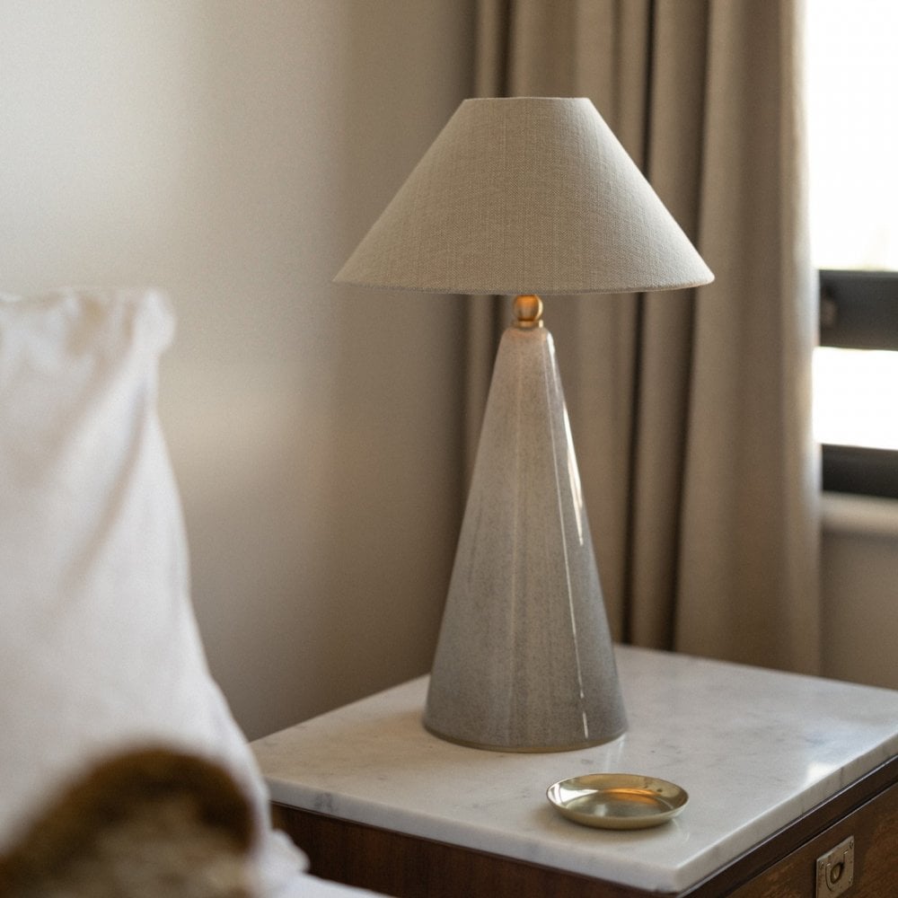 The Mila table lamp strikes a perfect balance between form and function with a clean, conical base, hand-blown from Salt glass. Designed to catch the light and the eye, Mila makes a striking addition to any bedside or side table.