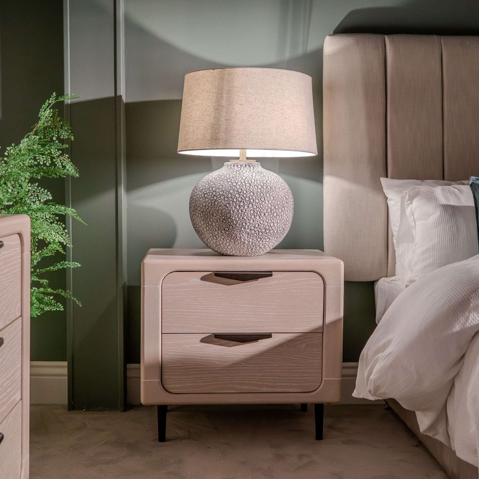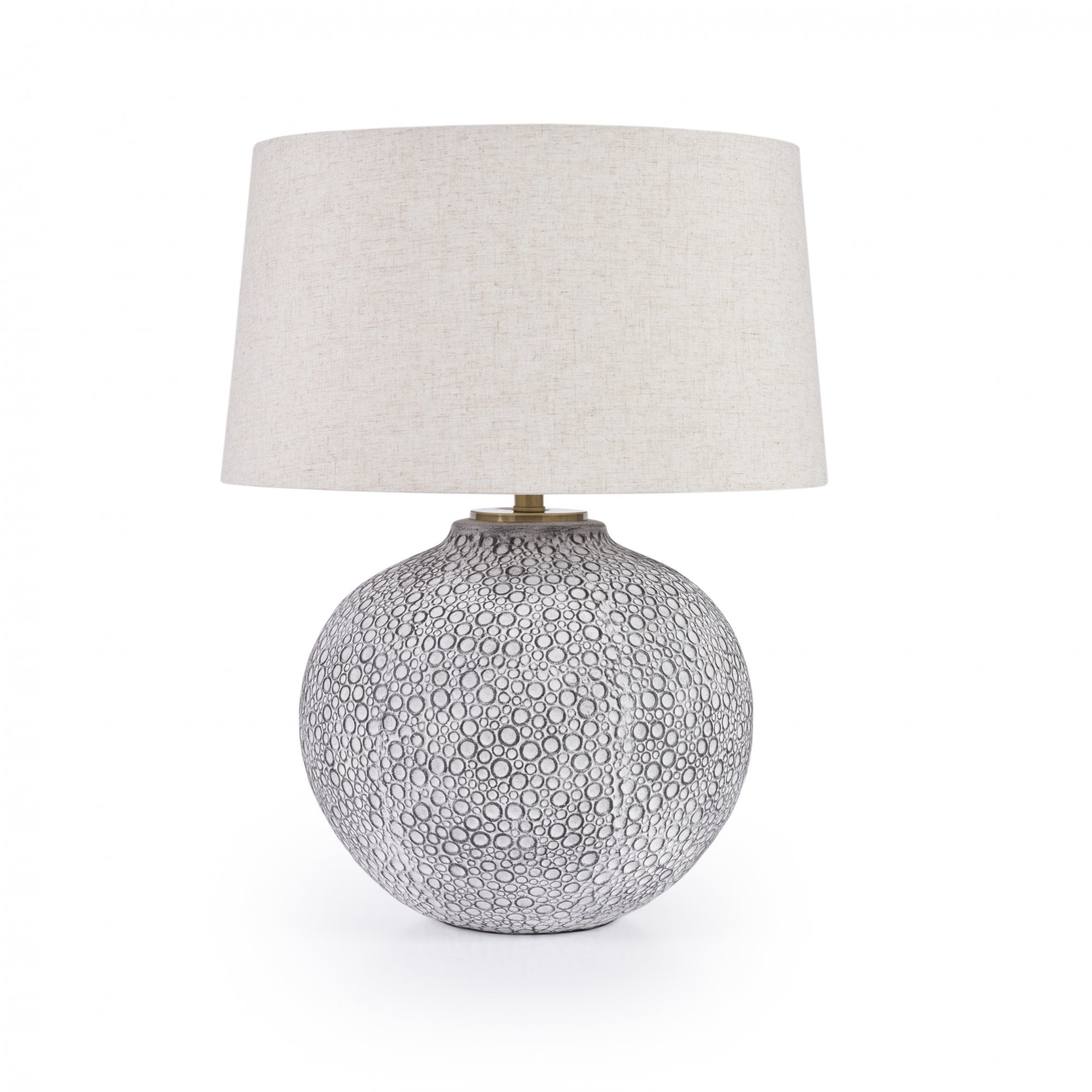 The Miri Lamp is the perfect addition to any space with its elegant ceramic design, featuring a stone look round base and a classic beige shade. Enjoy the warm and inviting ambiance it creates while adding a touch of sophistication to your home décor.