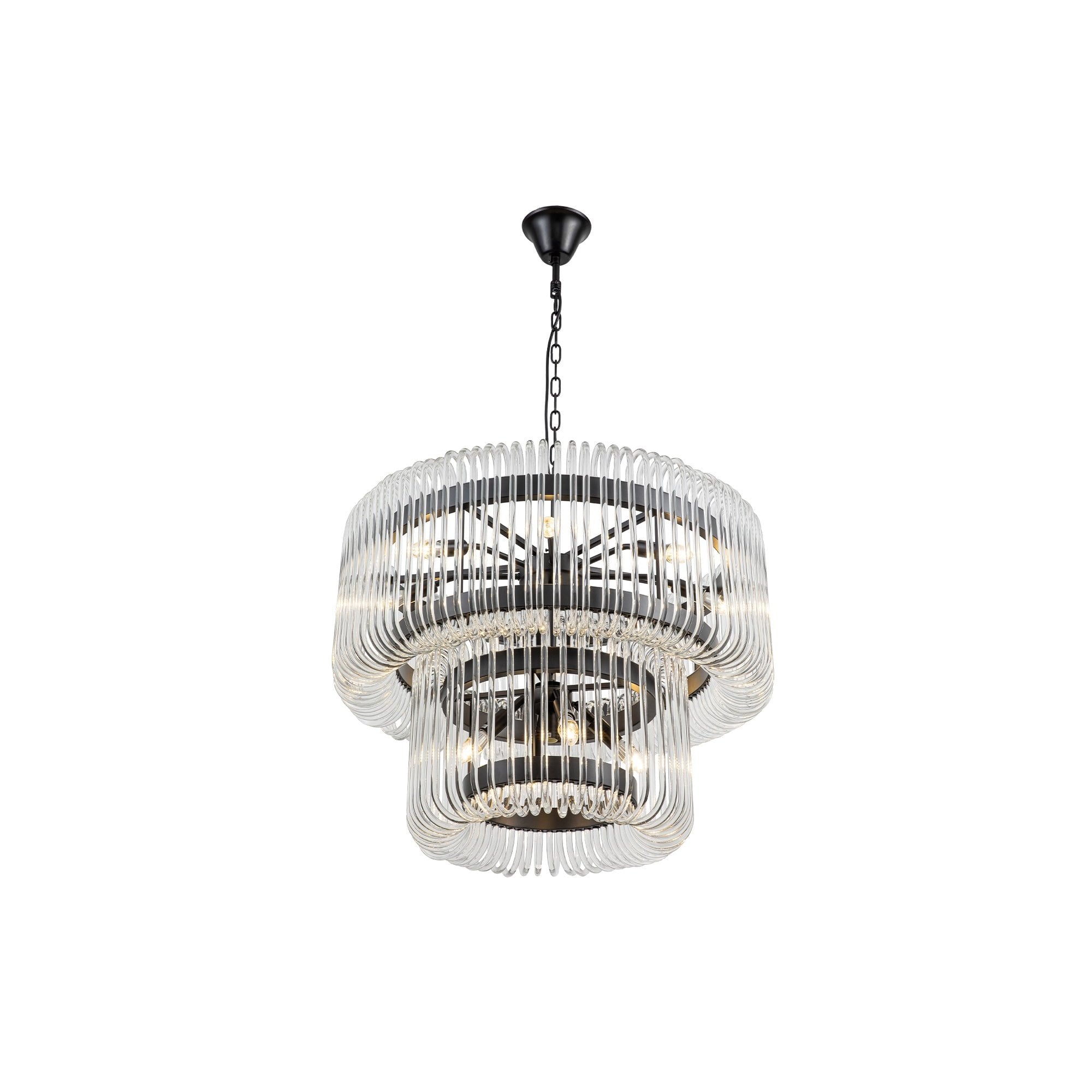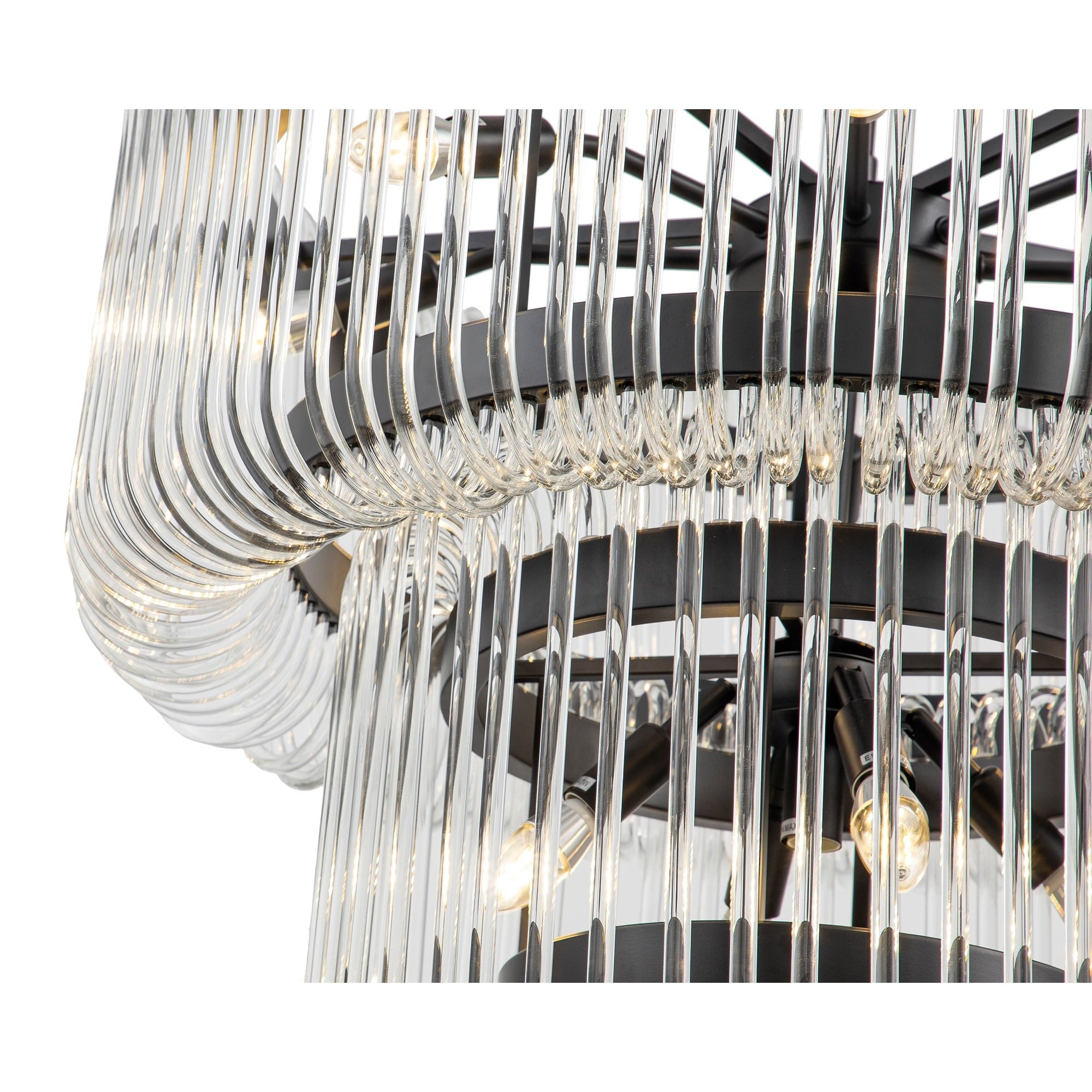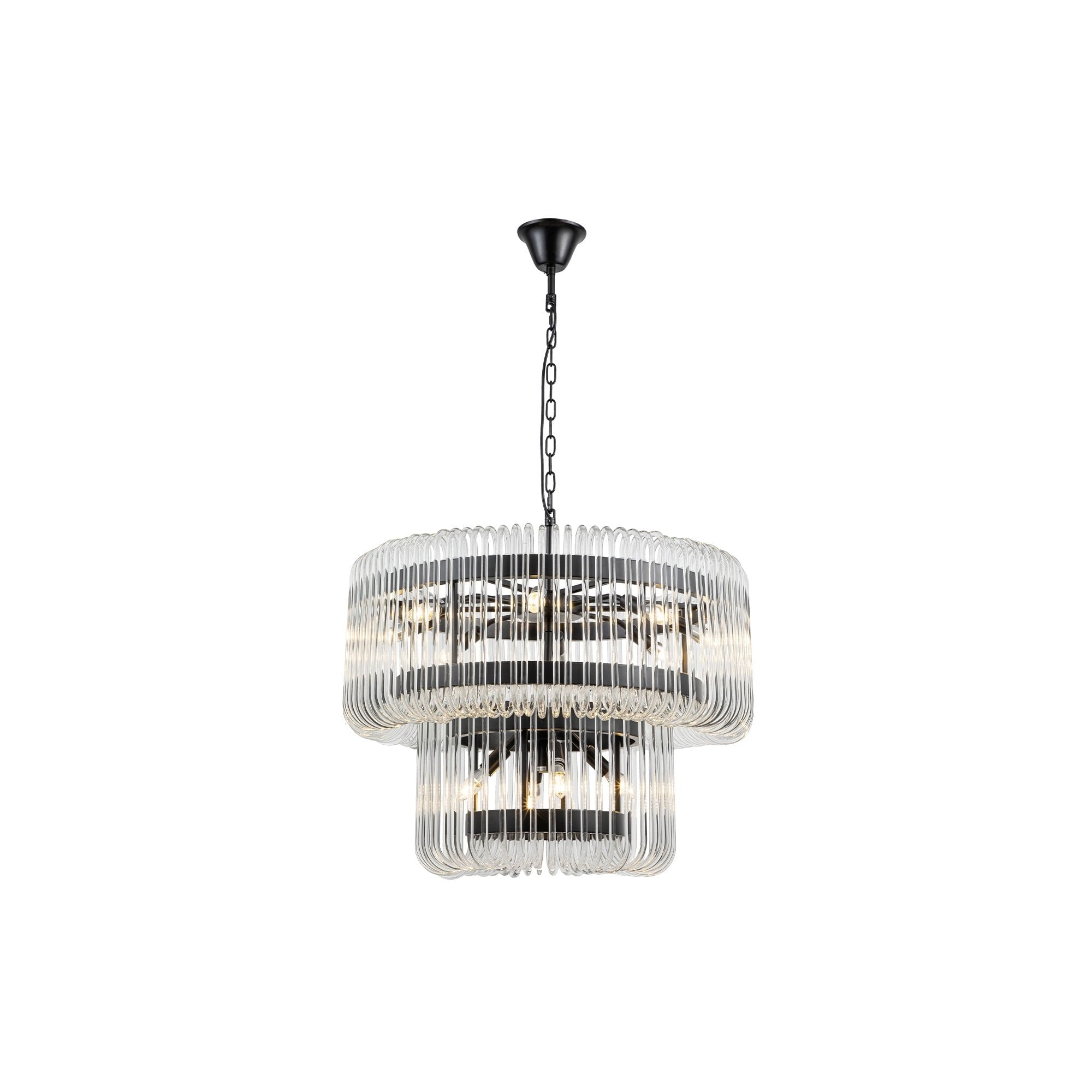 Introducing the Mist Tall Pendant Lamp, a stunning fusion of clear glass and sleek Matt Black finish—ideal for modern homes and hospitality spaces. Its industrial-chic design brings an elegant charm, creating a captivating focal point in entertaining areas. Perfect for showcasing, it radiates style from every angle. (Bulbs not included. Requires 13 x E14, Max 40W).