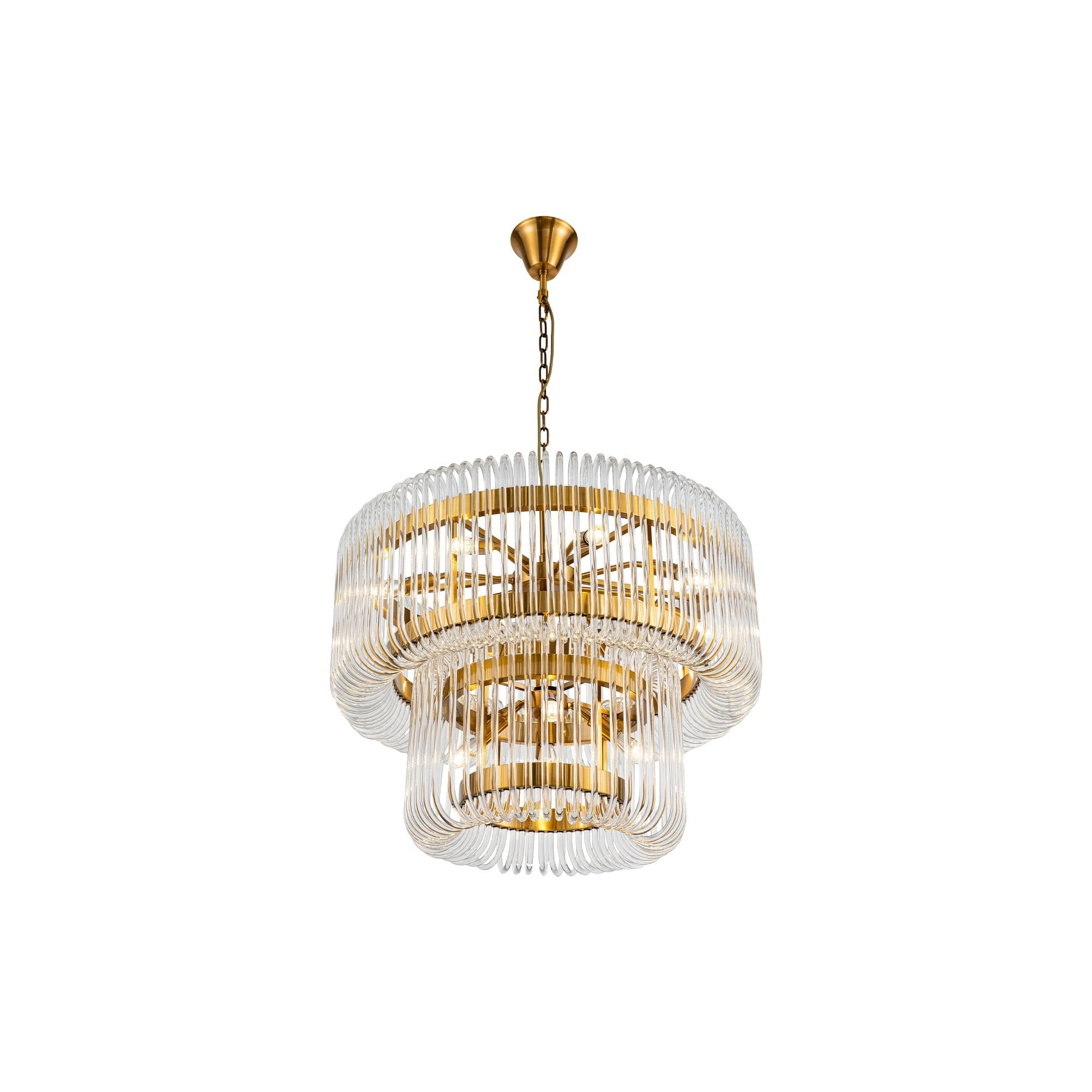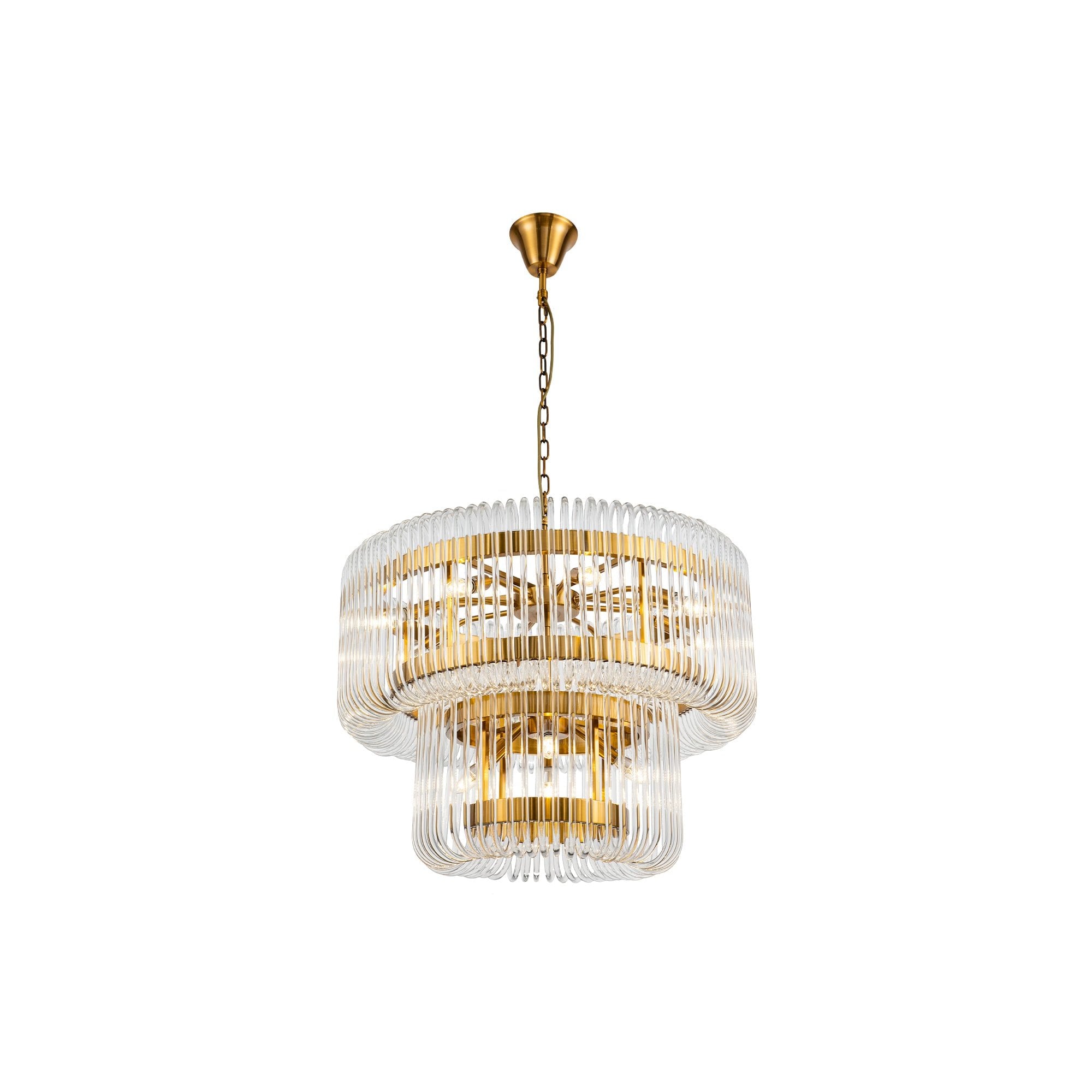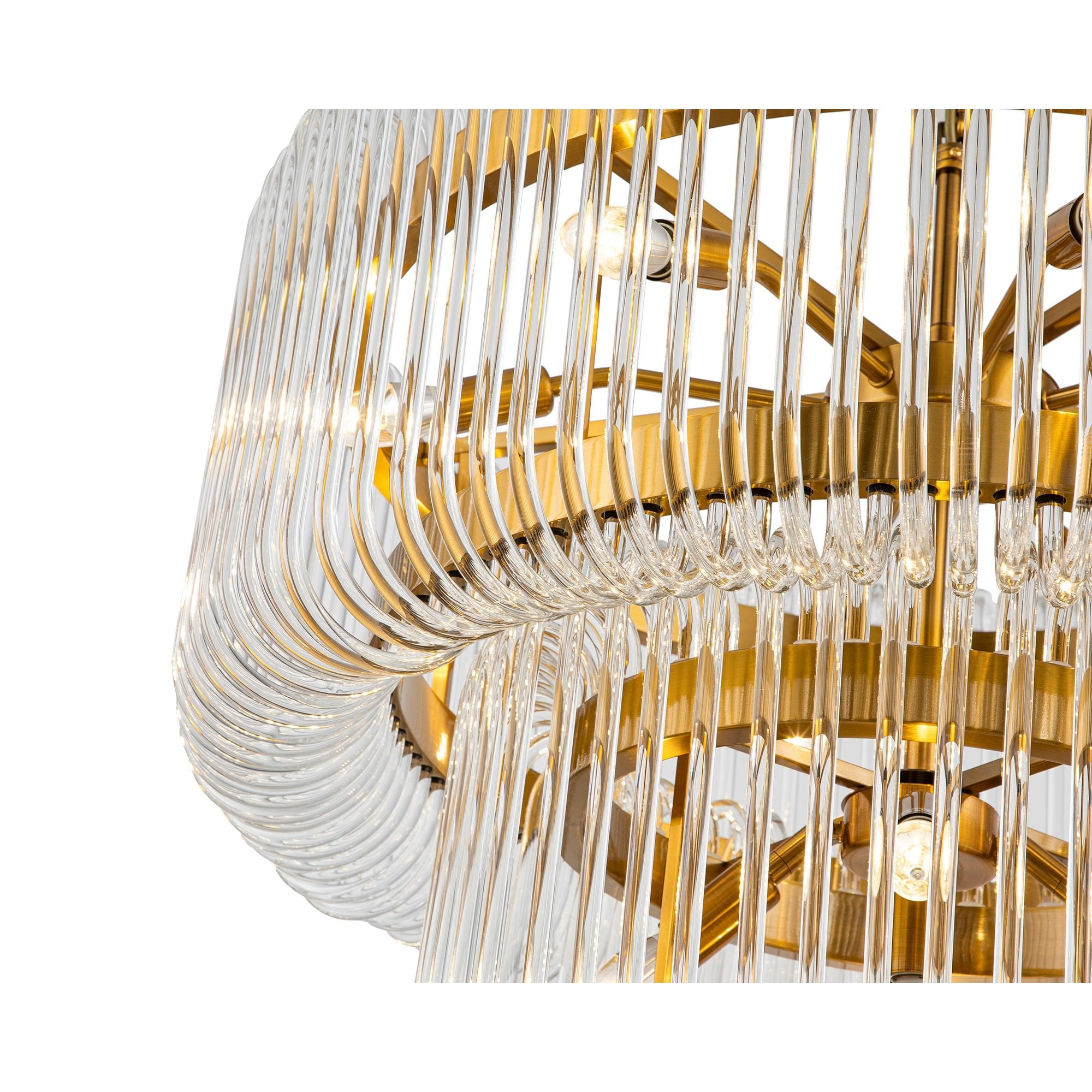 Elevate your space with the Mist Tall Pendant Lamp, a stunning fusion of clear glass and brushed brass. This elegant design seamlessly blends industrial charm with a delicate touch, making it an eye-catching centerpiece for both residential and hospitality settings. Perfect for entertaining, it radiates sophistication from every angle. (Light bulbs not included. Requires 13 x E14, Max 40W. For dimming functionality, use dimmable bulbs and switches.)