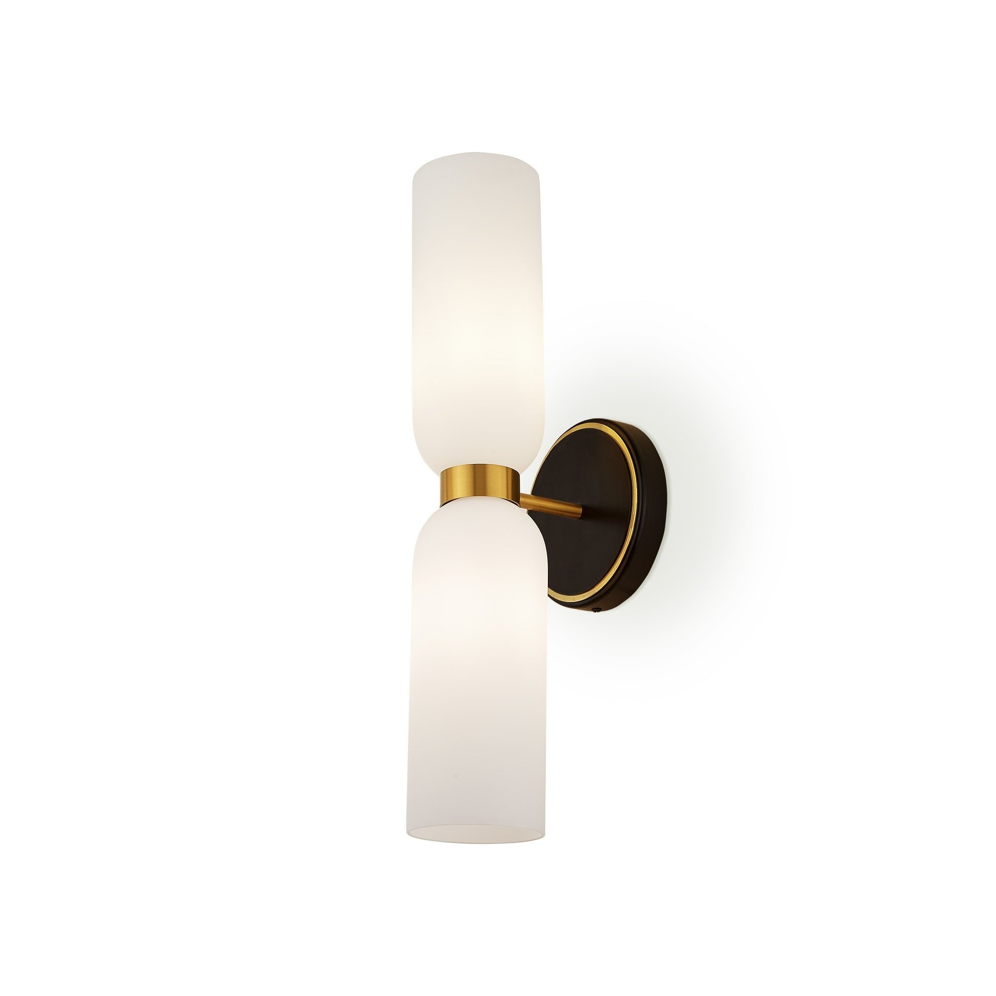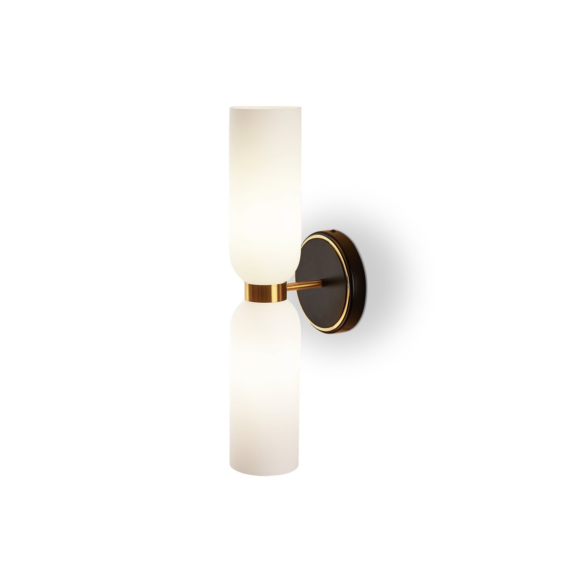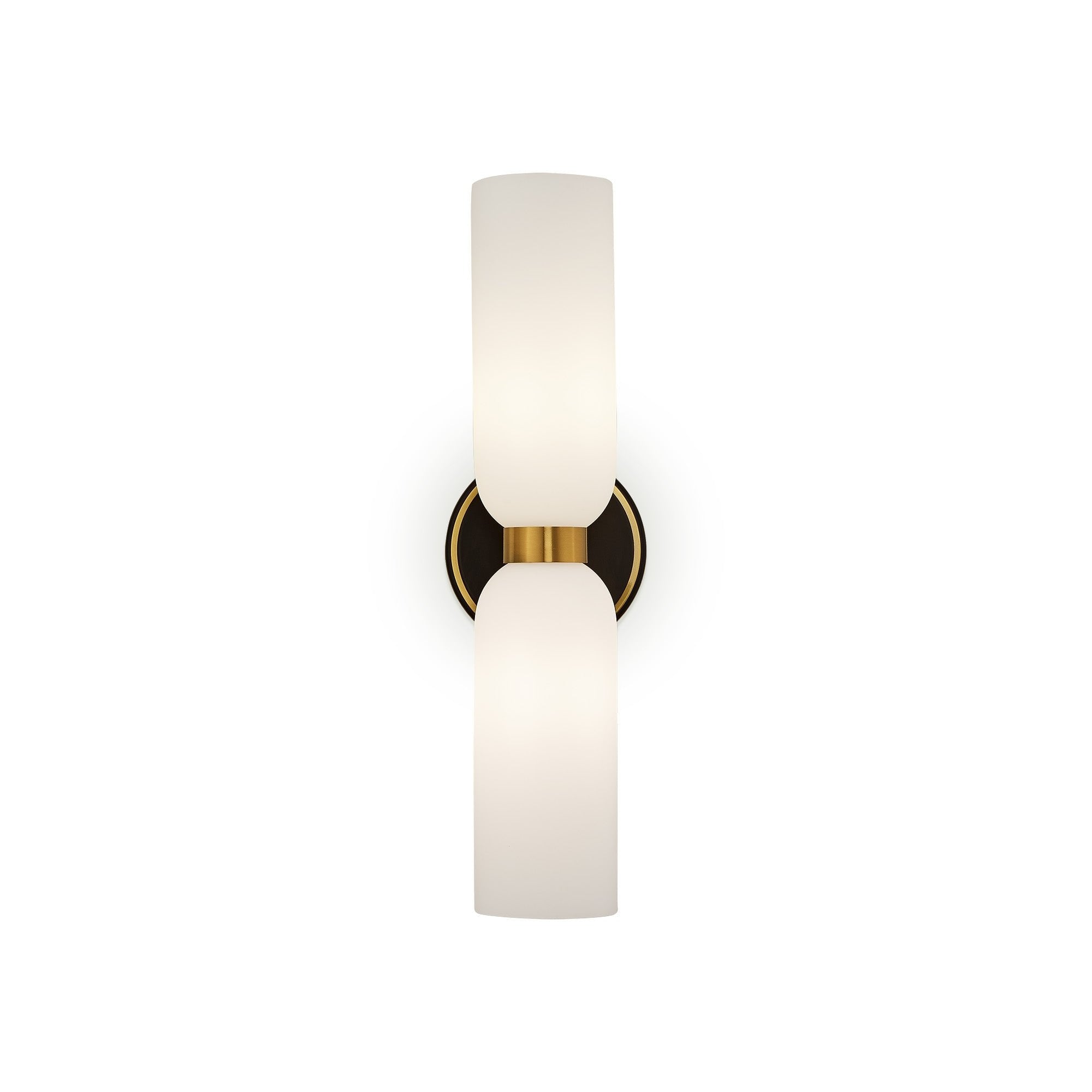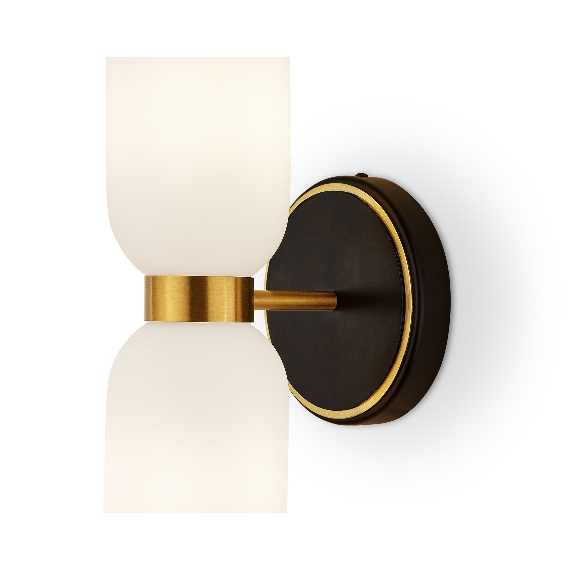 Elevate your interiors with the Pawson Wall Light, an exquisite blend of modern design and timeless elegance. Featuring white glass shades and a striking black iron base with brass accents, this versatile light enhances any space while providing a warm, inviting glow. Perfect for residential and hospitality settings alike.