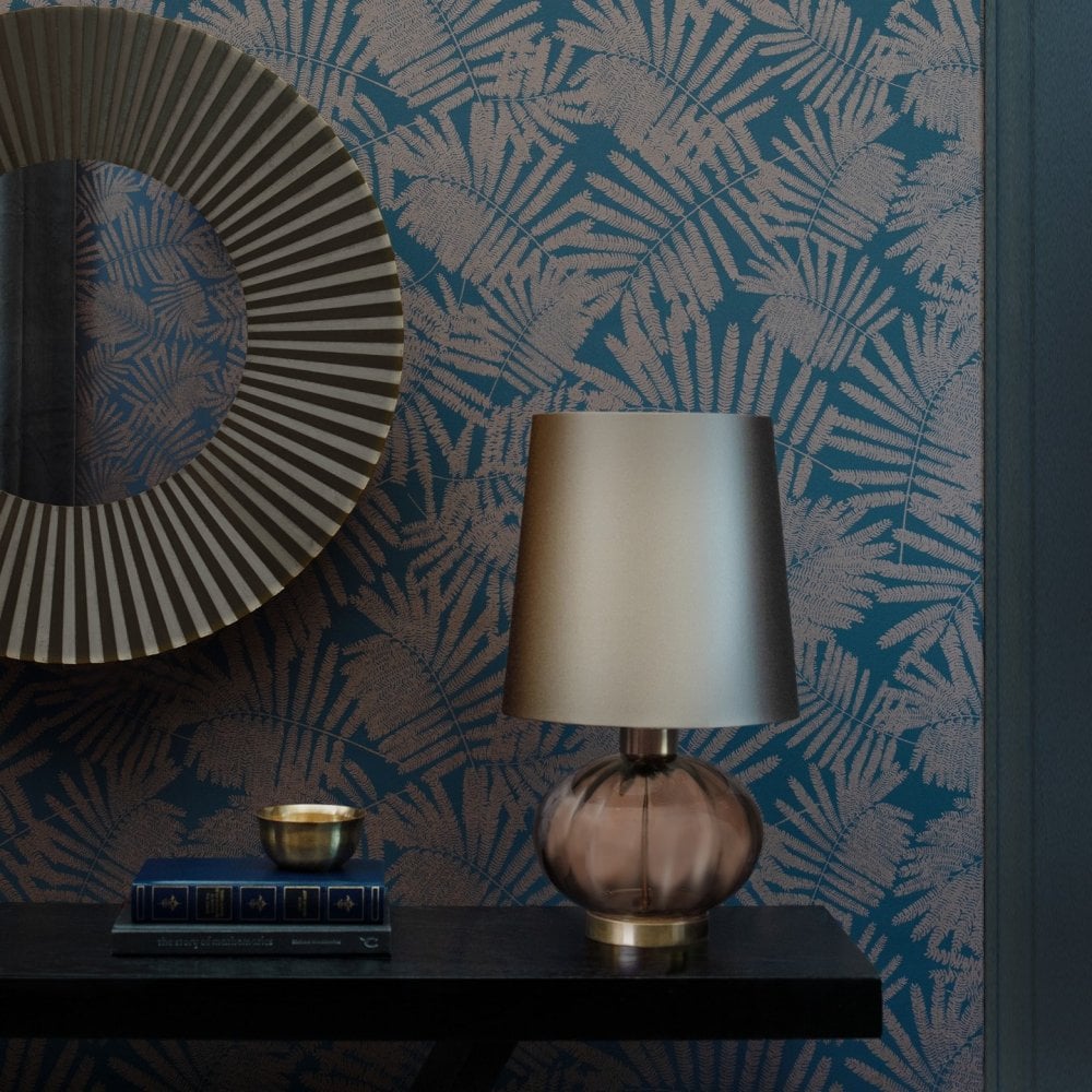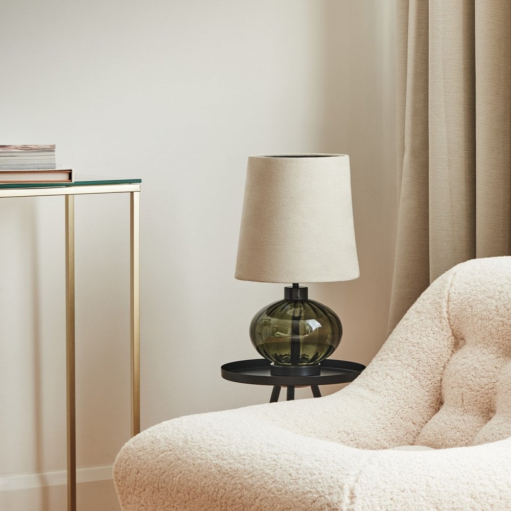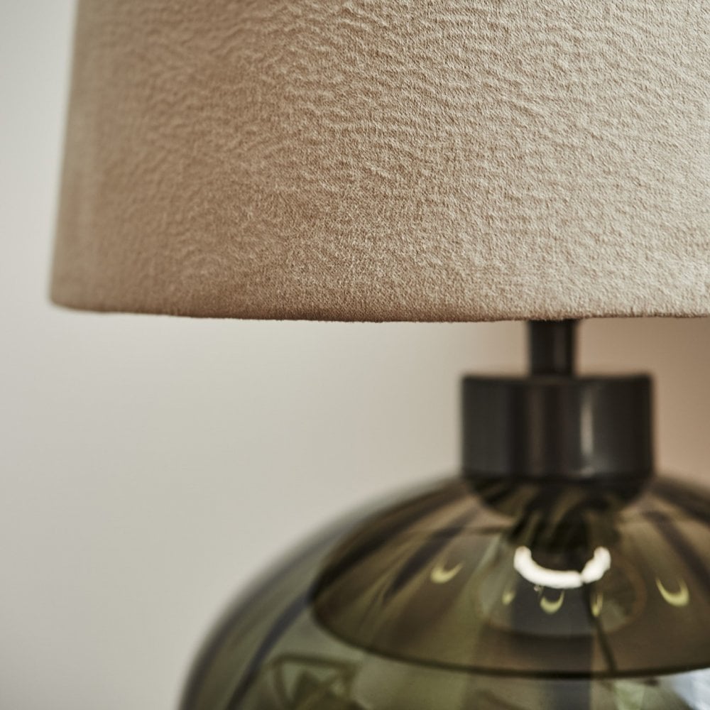 Our Pedra table lamp is perfectly petite. Beautifully fluted glass in a small dumpling shape is paired with simple metalwork in a complementary finish.