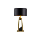 Pharo Table Lamp Matt Brushed Brass & Black Leather Base with Black Fabric Shade