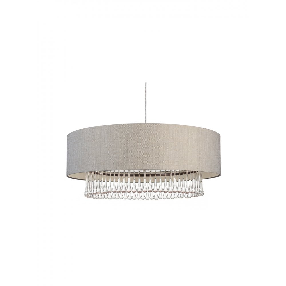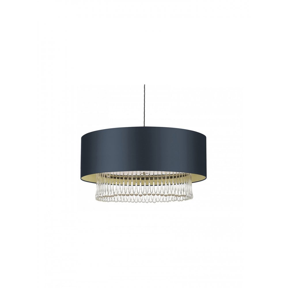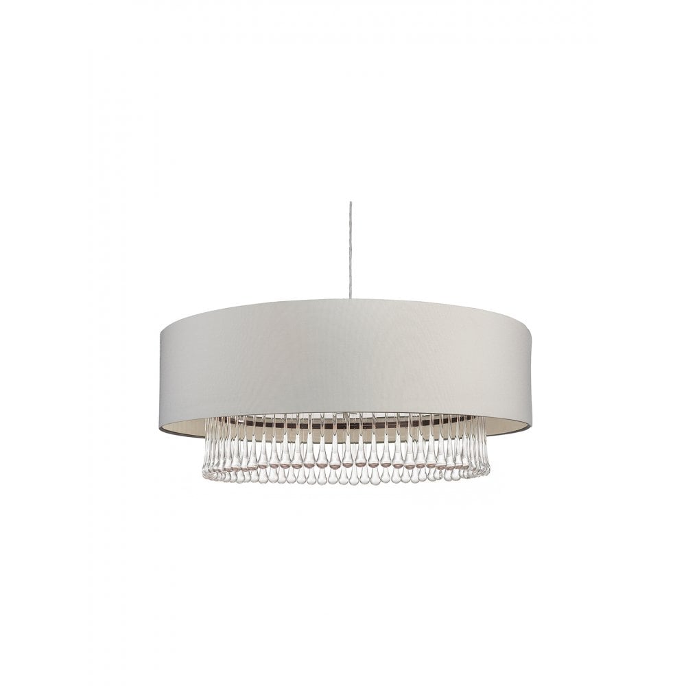 Our classic Roehampton pendant features individual crystal glass drops uniformly arranged around a straight sided drum. The mirror finish diffuser casts reflections of the interior in the crystal droplets below.