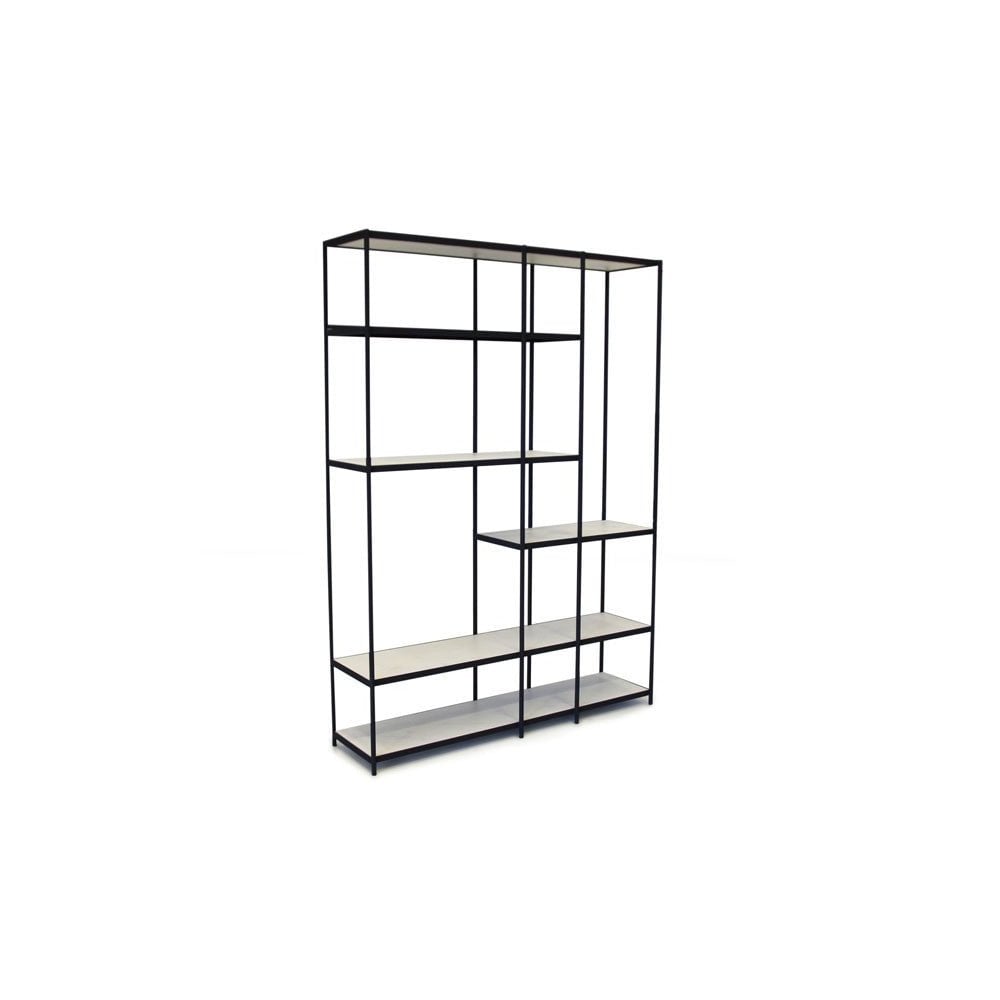 The matte black metal frame not only adds a touch of industrial elegance but also provides robust support to the open unit design. Standing tall at 2 meters, this bookshelf offers ample space for displaying books, collectibles, and décor items, transforming any room into a sophisticated display area.