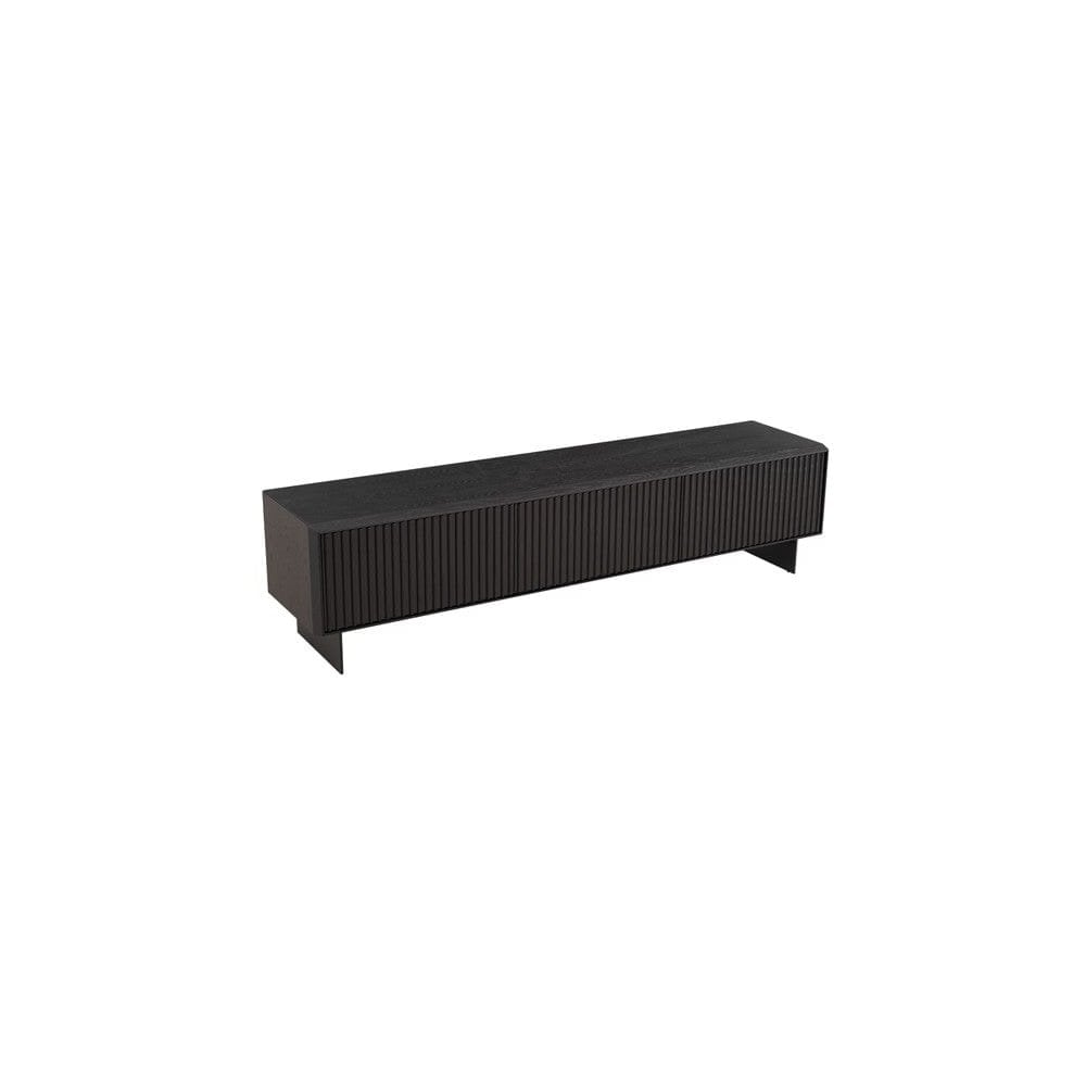 The Costine TV Unit is a chic and elegant piece that draws attention with its distinctive ribbed front detail. Its refined design is enhanced by a smoke oak veneer finish on the outer, and the matte black lacquered legs and doors, exuding a sense of sophistication. With a generous length of 2 meters, this unit not only accommodates your entertainment needs but also provides ample storage space. The Costine TV Unit stands as a tasteful addition to any living space, seamlessly combining aesthetics and functionality to create a statement piece that enriches the overall ambiance.