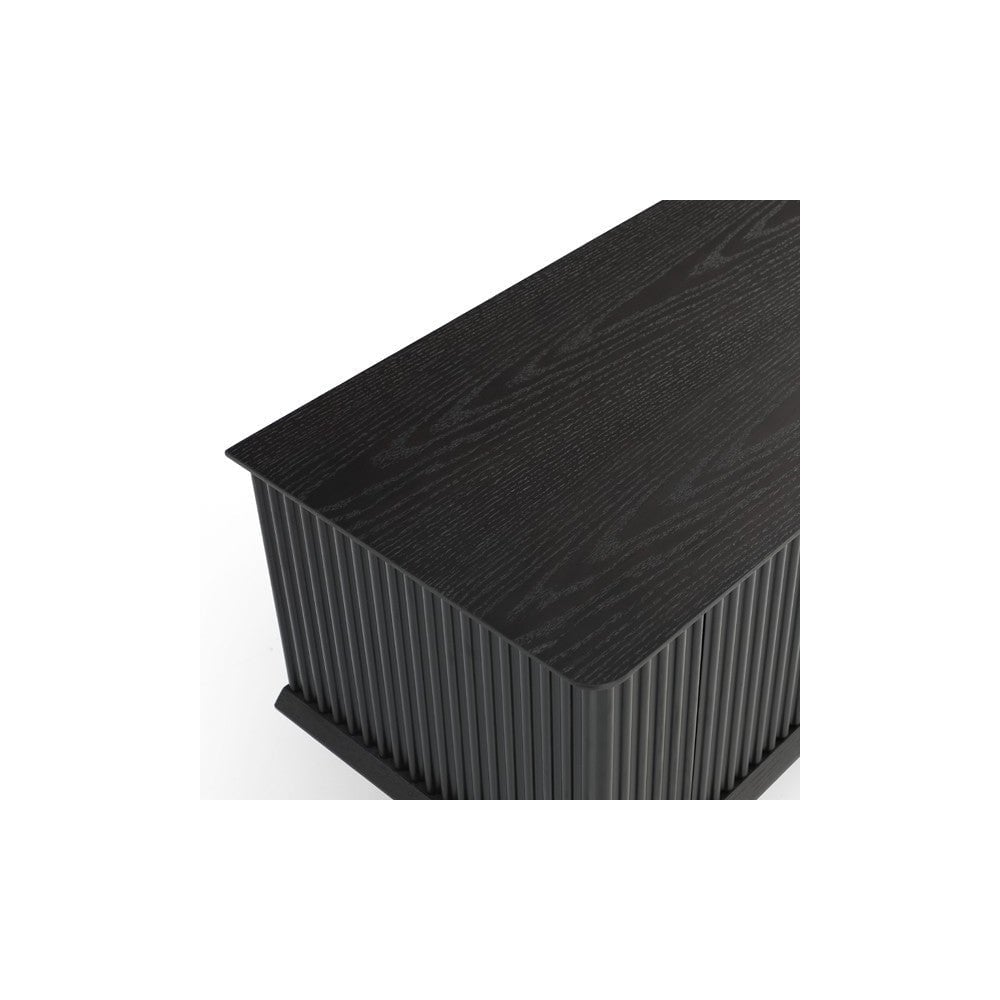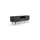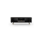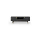 Elevate your modern home with the unparalleled elegance of the Rhodes TV Unit. Crafted to perfection, it embodies a seamless blend of luxury and contemporary design. The smoked oak top and meticulously detailed middle drawer evoke a sense of enduring charm, while the ribbed black sides and doors create a captivating contrast that exudes sophistication. The exquisite brushed brass handles and delicately crafted foot caps add a final touch of opulence, infusing the piece with a sense of refined grandeur. As both a functional and artistic centerpiece, the Rhodes TV Unit makes an unequivocal statement, harmoniously merging classic appeal with contemporary aesthetics to enhance your living space in an unforgettable way.