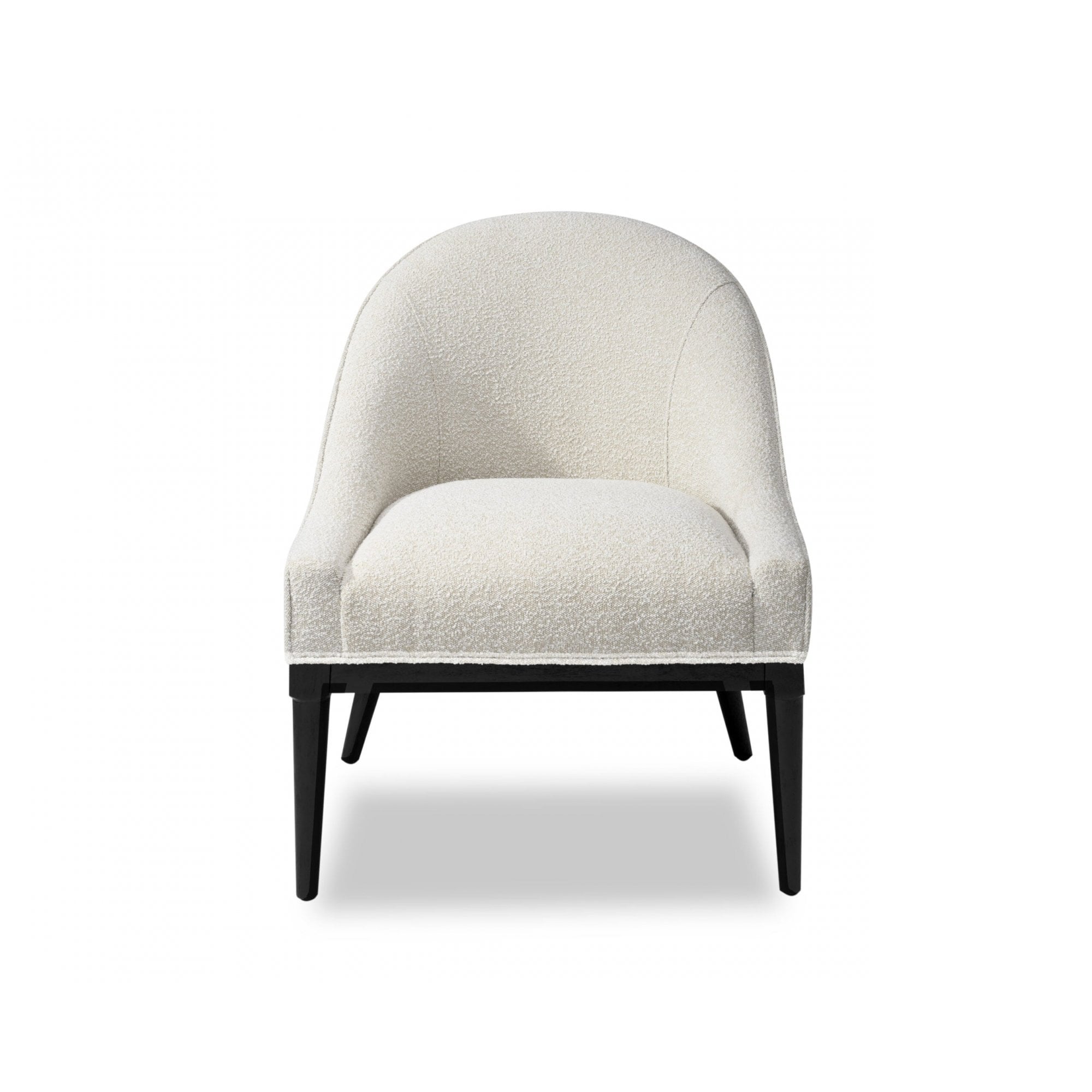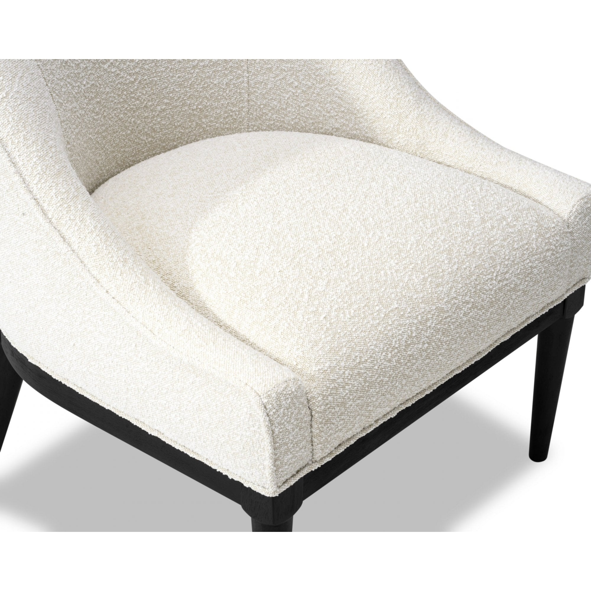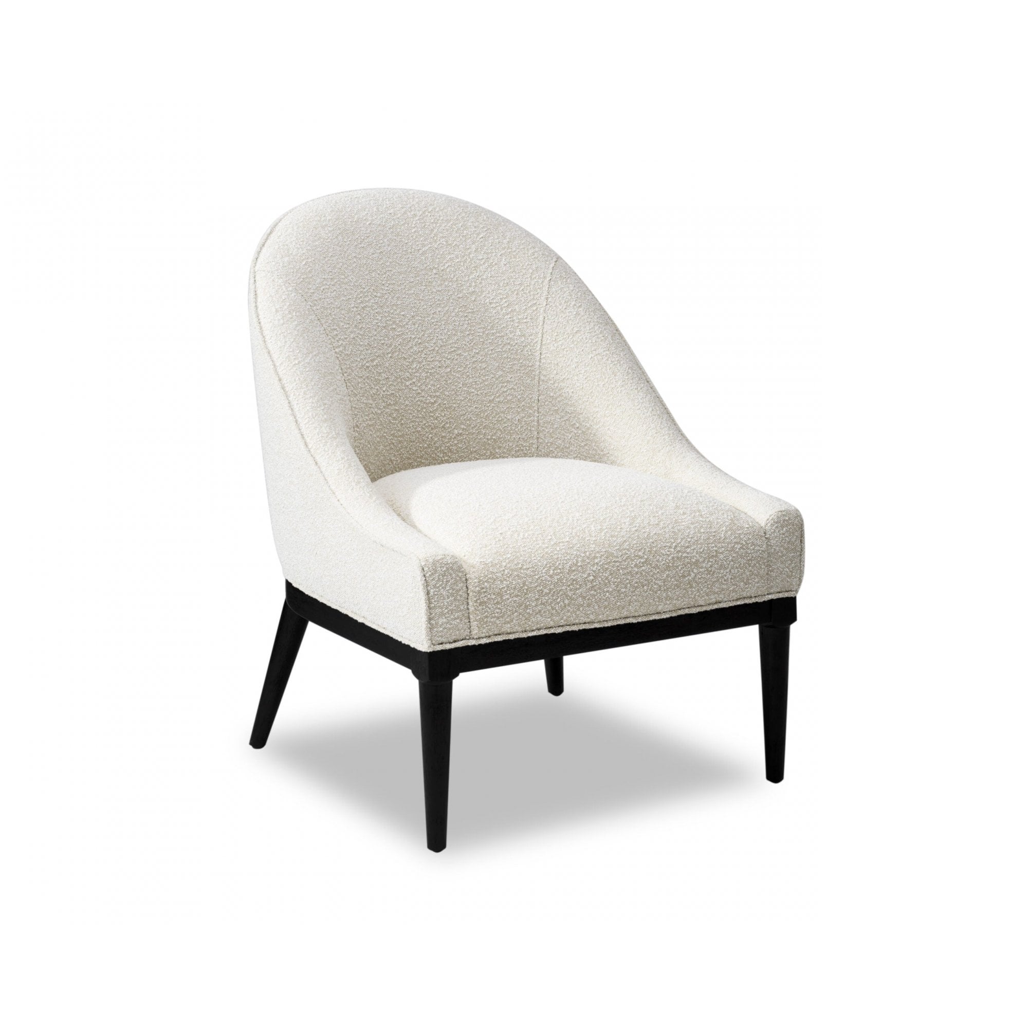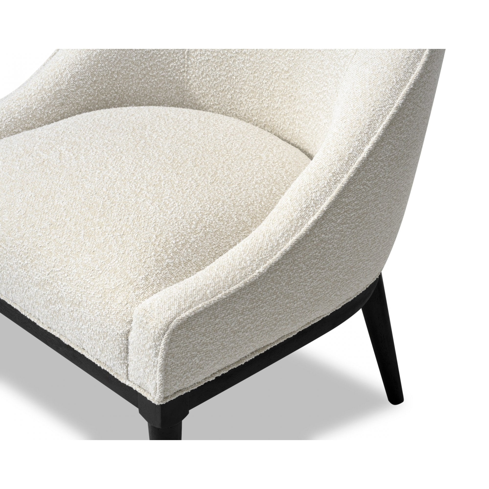 Embrace the sophisticated allure of the Vegas Occasional Chair, skillfully designed with a gracefully rounded backrest and sloping armrests for maximum comfort. Upholstered in plush Boucle Sand, this minimalist chair features solid wood legs in charcoal, ensuring it complements any style while maintaining a refined presence in your living space.
