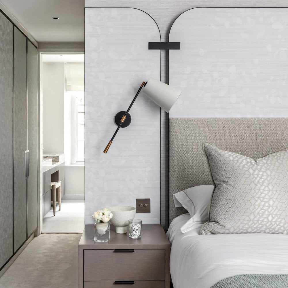 Our mid century inspired Andro double wall light is finished in black satin and features antique brass details. Swivel joints enable the shades to be angled to suit the space.
