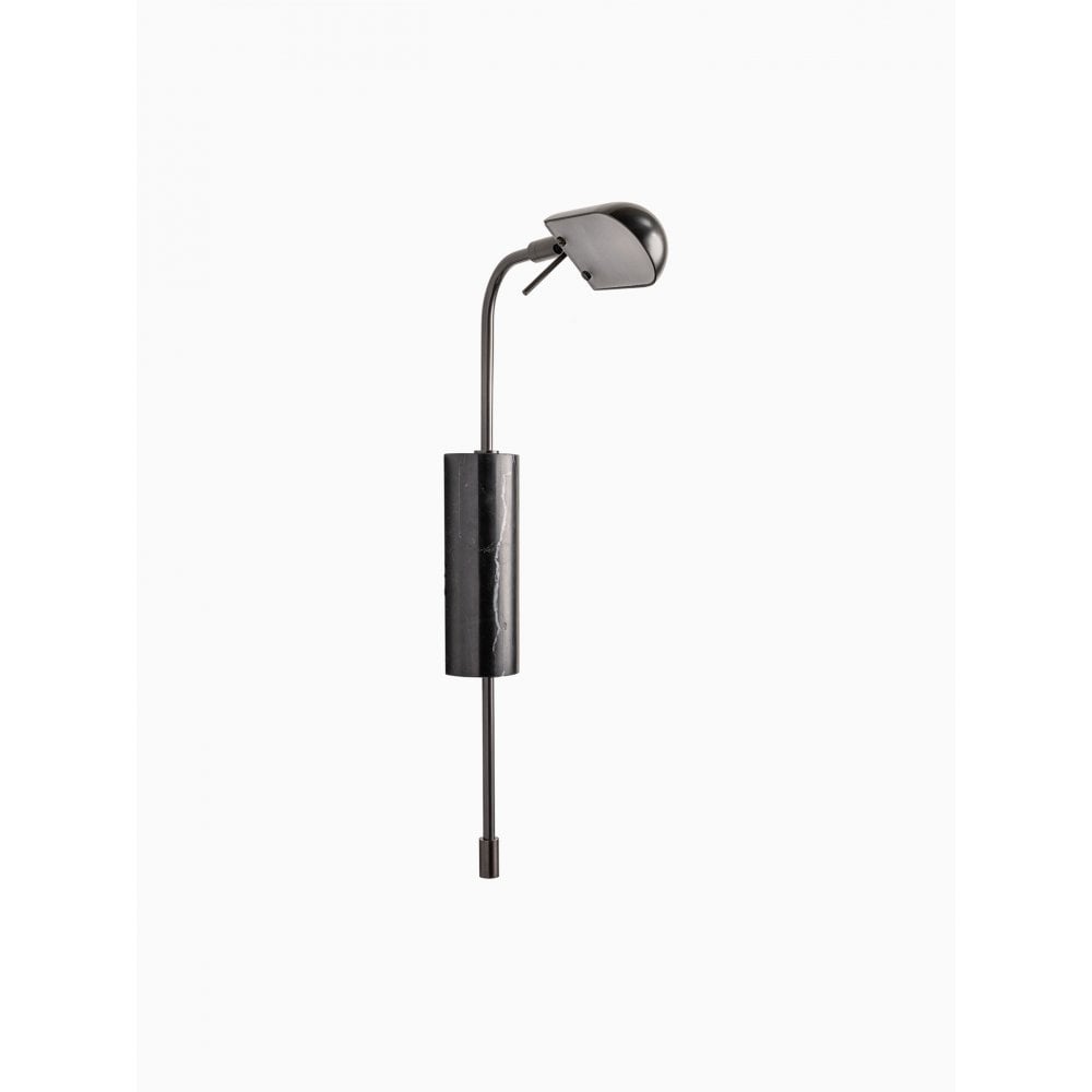 Designed for both function and style, the Ezra Wall Light features an adjustable light cowl and solid marble detailing. Available in Satin Brass with mocha marble or Blackened Bronze with black marble.