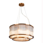The Iona Pendant Ceiling Light showcases an elegant two-tier design featuring delicate glass rods beautifully framed within an antique brass structure. This striking pendant light creates a sophisticated statement while casting a soft, atmospheric glow throughout the room.