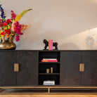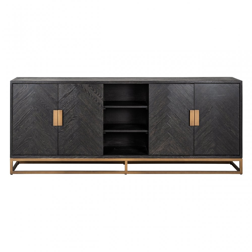 Blackbone Rustic Black Oak & Brass 4 Door Sideboard