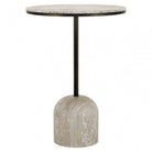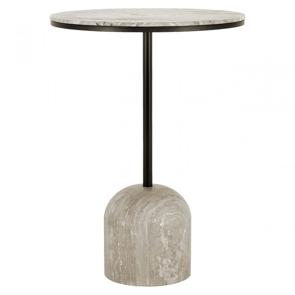 Designed with a striking dome-shaped base in exquisite grey-white marble, it features a sleek iron stem that extends to a matching marble top, creating a seamless and elegant look. Its compact design ensures versatility, fitting effortlessly into both spacious and smaller interiors.