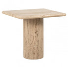 Crafted from travertine, this stunning piece features a robust cylindrical base paired with a sleek square top, striking the perfect balance between elegance and durability. Ideal beside a sofa or armchair, it provides a handy spot for your coffee or favorite book. Alternatively, place it in an entryway or cozy nook to showcase a vase of flowers or a statement lamp.