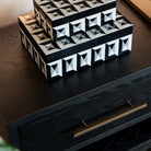 Presenting the Richmond Interiors Licia Large Jewellery Box in Black & White. This sophisticated and stylish jewellery box features a classic black-and-white design, offering a timeless appeal. Perfect for elegantly storing your favourite accessories, its compact size ensures your cherished pieces remain organized and within easy reach. Crafted with luxurious detailing and exceptional quality, this Richmond Interiors jewellery box is a refined addition to any vanity or dresser.