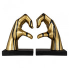 Masterfully crafted from polyresin, these abstract bookends feature sleek black bases supporting hands sculpted into the shape of a heart, symbolizing the deep connection between a reader and their books. The hands are finished in a radiant gold, contrasted by dynamic black lines that resemble flowing ink, adding a creative touch.