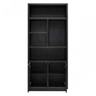 Bookcase Oakura is tempting black with open compartments and two closed doors. Enough space for your beautiful accessories! The Oakura bookcase is made of black oak veneer. Basic with a cool, chic touch.