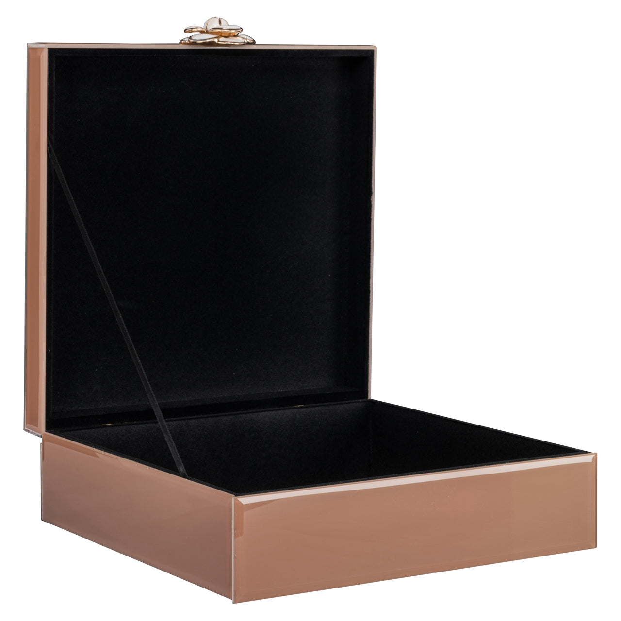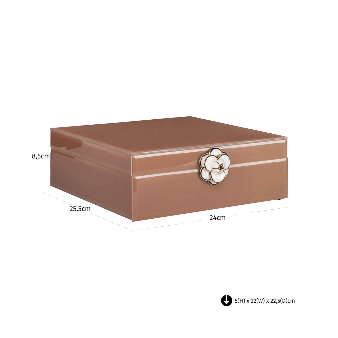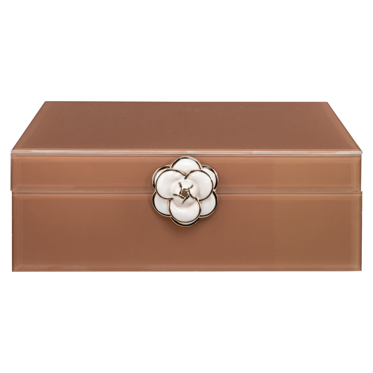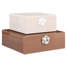 A decorative storage box featuring a floral design in brown. Perfect for storing small items while adding a warm accent. Its design blends easily with different interior styles and helps create a balanced atmosphere in the room. The design remains easy to combine with a wide range of interior styles.