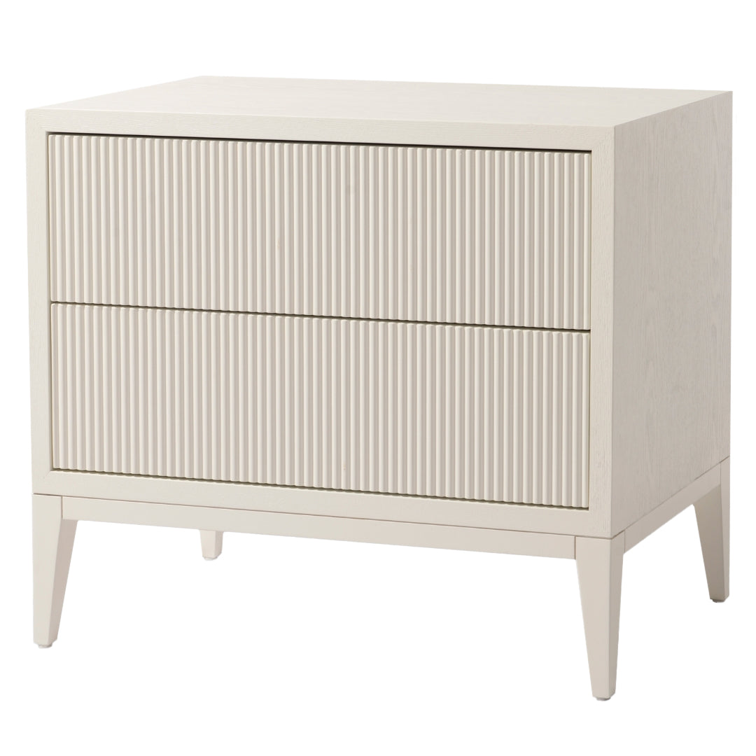 The Amur bedside table combines practicality with style, making it a perfect addition to any contemporary or modern bedroom. It features two spacious drawers, providing ample storage for clothing, accessories, or other essentials. The standout fluted detail on the drawers adds a touch of elegance and muted texture, enhancing the overall aesthetic of the piece. Crafted with attention to design and functionality, the Amur bedside table is both a functional storage solution and a stylish focal point in your bedroom décor.