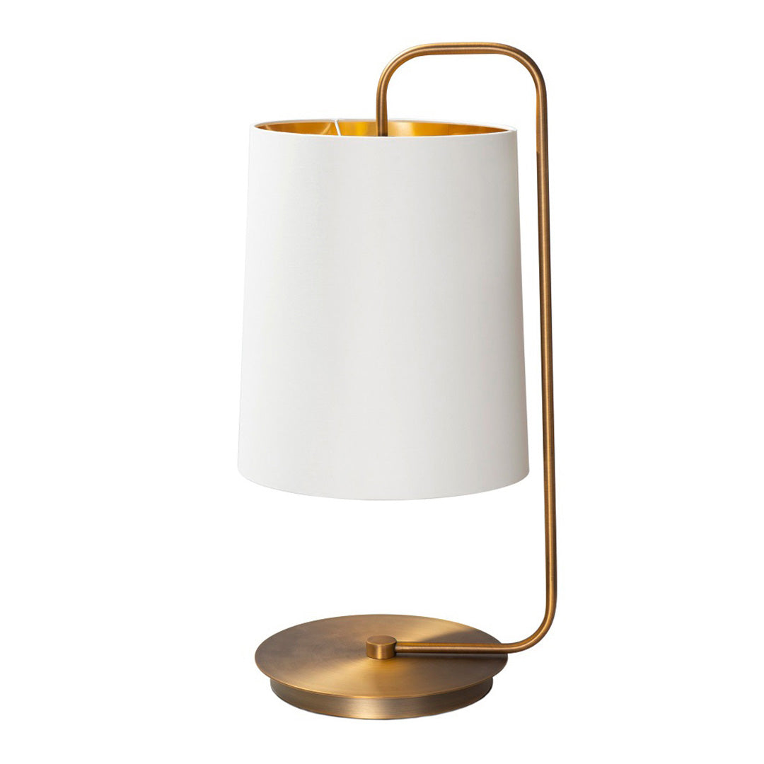 Introduce a sense of gentle movement to your décor with the Knight Table Lamp. Its smoothly curved antique brass stem provides an elegant and flowing silhouette, while the round white shade ensures a soft and diffused illumination. This lamp combines graceful design with practical lighting, making it a versatile addition to your home.