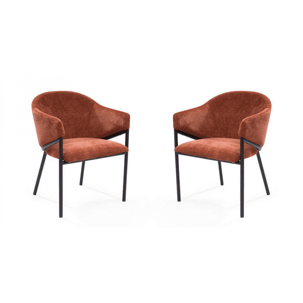 The Aidan Armchair is a celebration of comfort and style, embodying a perfect blend of sophistication and relaxation. Its generous proportions and plush, soft fabric create an inviting oasis for those seeking respite. The rust-colored upholstery adds a touch of warmth and richness, making it a statement piece that effortlessly enhances any space. The black powder-coated frame not only provides a sleek and modern contrast but also ensures durability and stability. With its harmonious design, the Aidan Armchair is not merely a piece of furniture; it is an embodiment of comfort and elegance, inviting individuals to unwind in its embrace while making a distinctive style statement in any room.