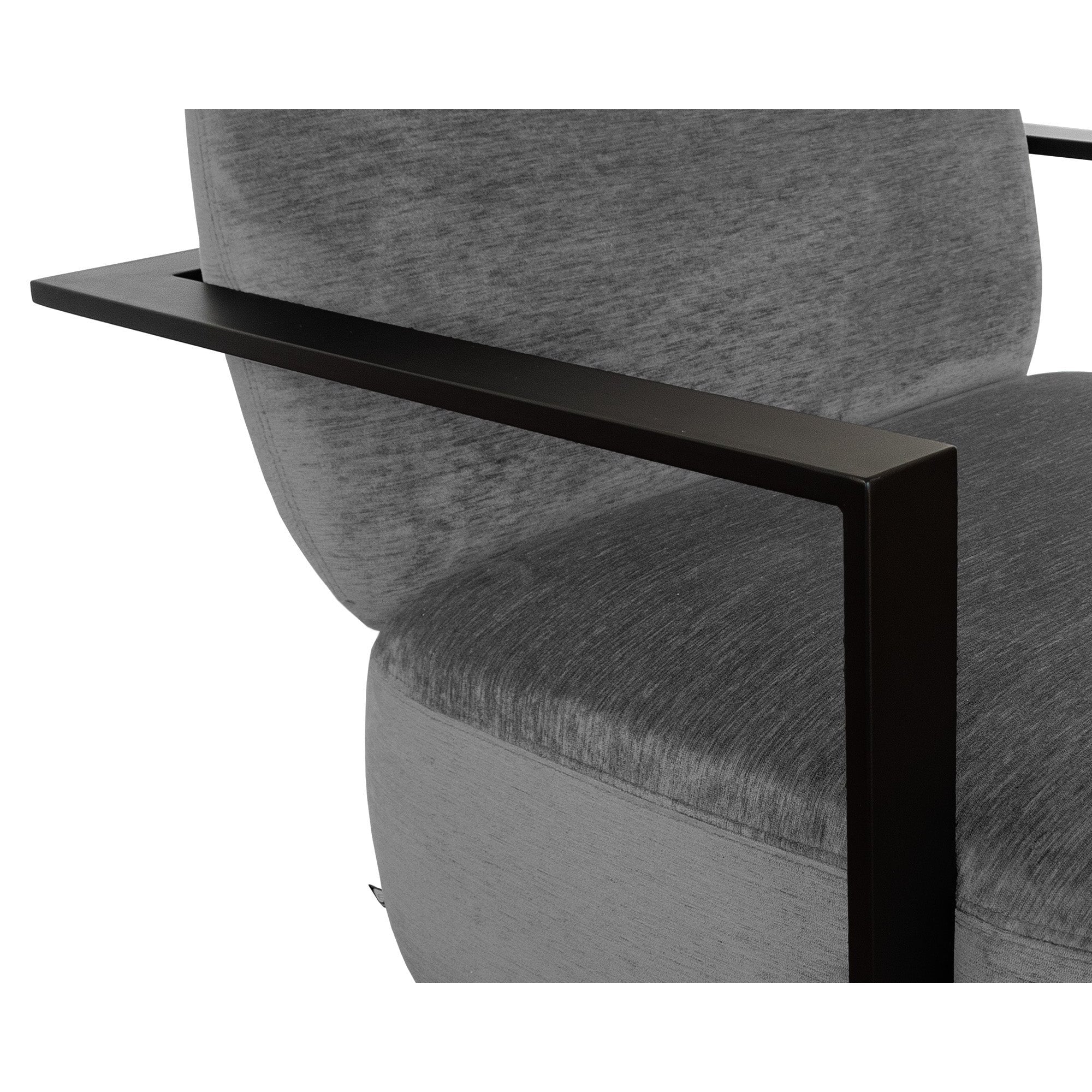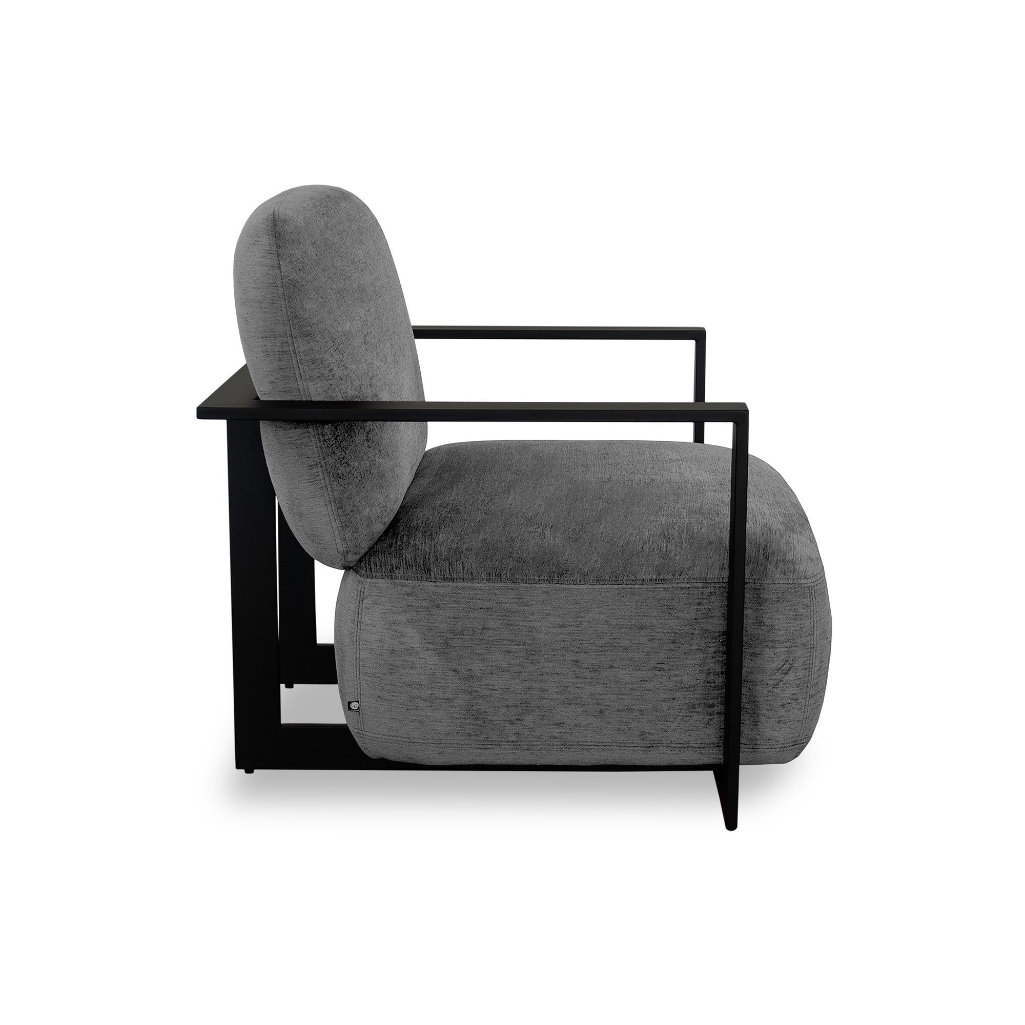 The Archivolto Occasional Chair, upholstered in Sysley Chalk II grey fabric with a matt black metal frame, combines durability and style. This architectural masterpiece adds sophistication and comfort to any space, making it the perfect centrepiece for a relaxed living room or upscale interior.