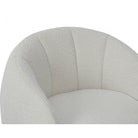 Experience the elegance of the Boucle Sand Occasional Chair, a masterpiece inspired by Art Deco design. This chair boasts an enveloping barrel back, featuring meticulously flared, channelled upholstery that pays tribute to iconic designers of the era. A crisply upholstered tight seat rests upon a stylish, recessed matt black iron base, which discreetly houses a 360-degree swivel mechanism, offering both remarkable comfort and sophisticated style for your refined living space.