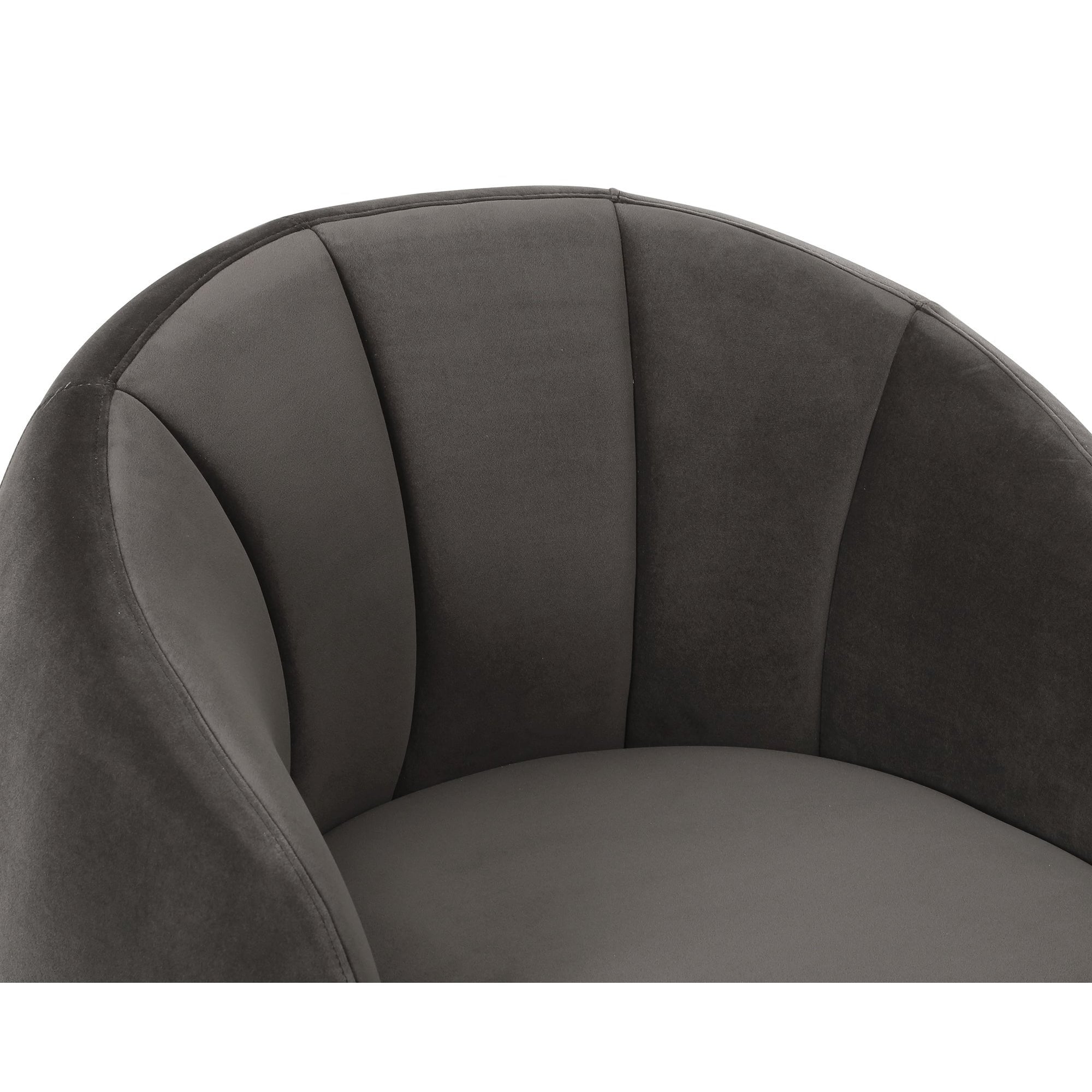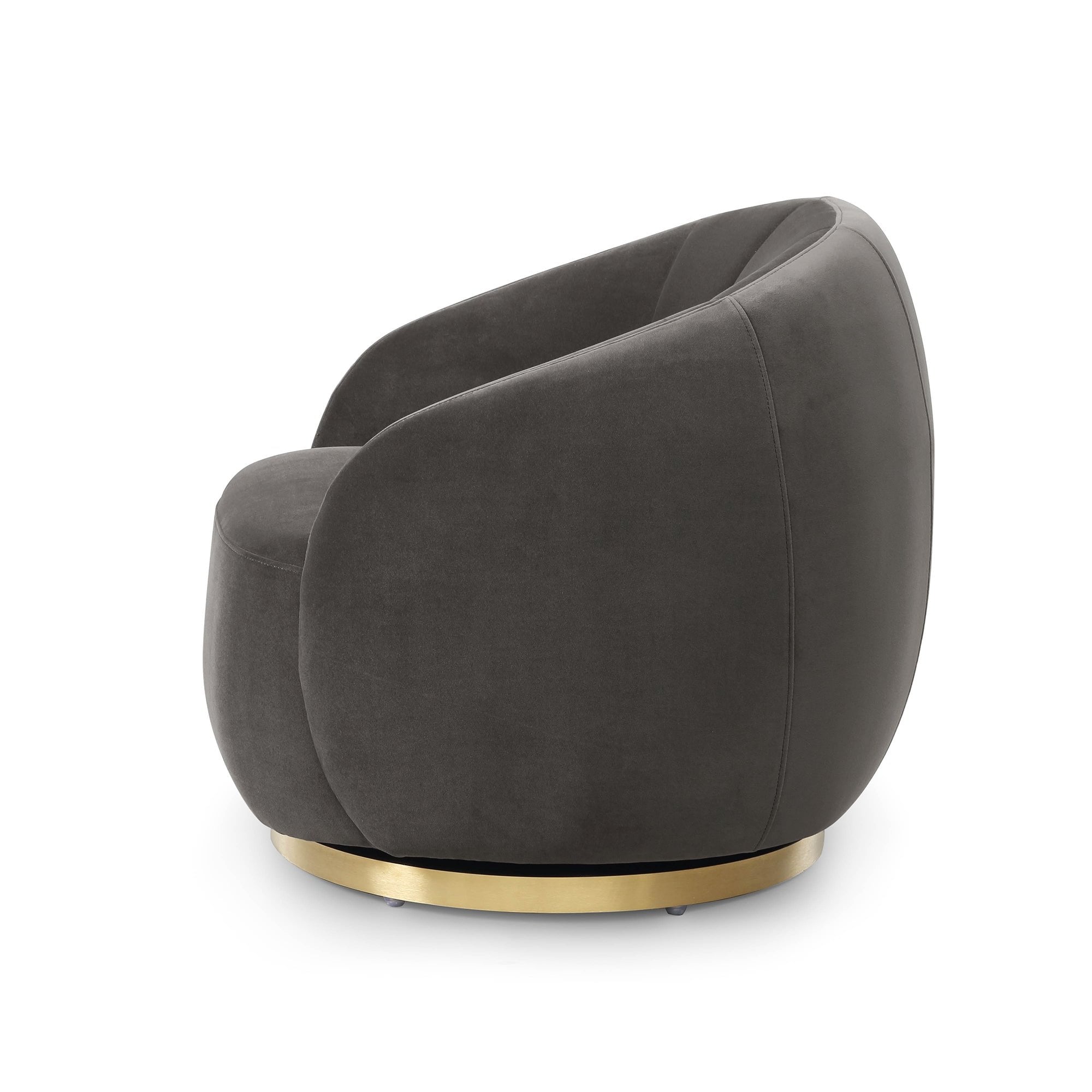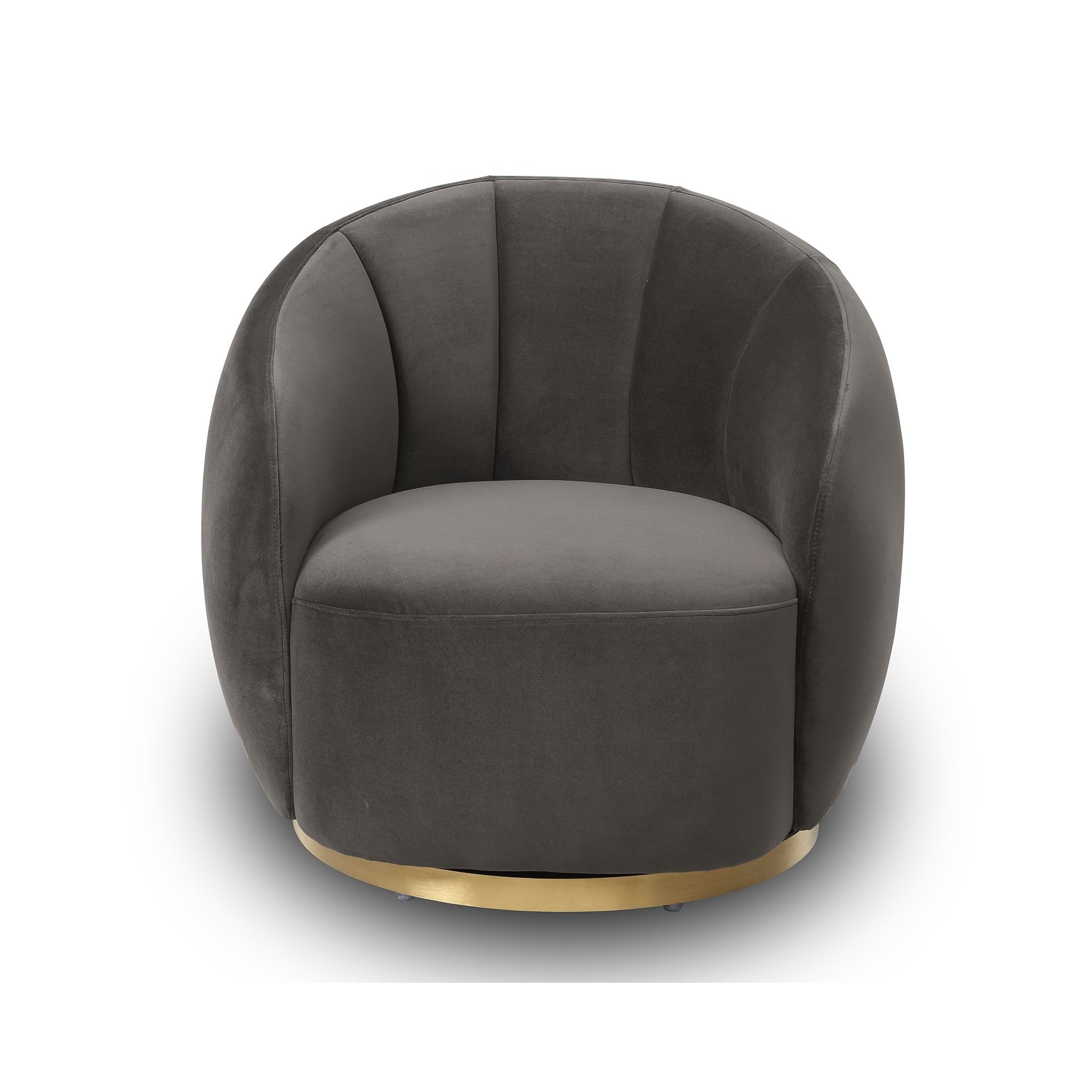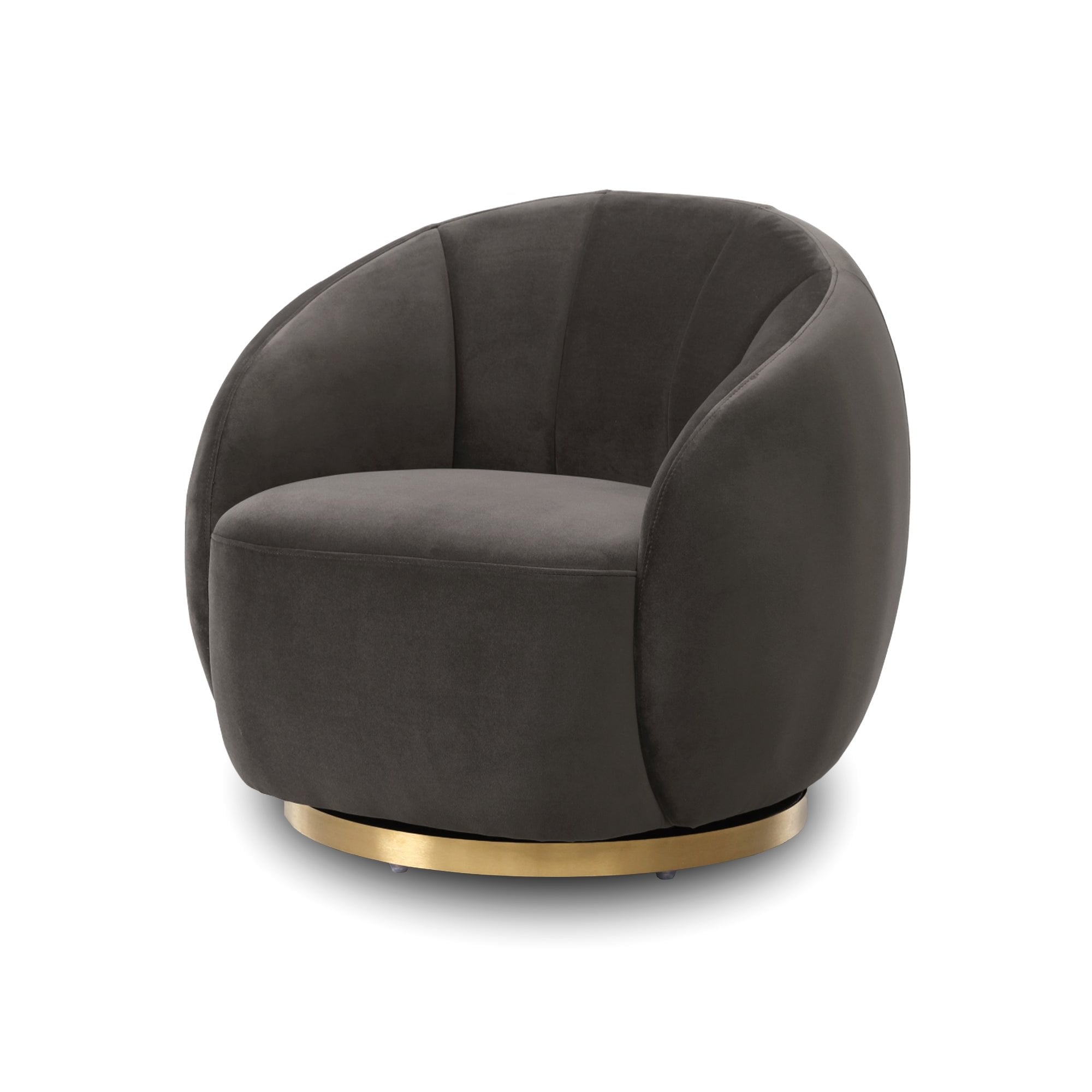 Discover the perfect blend of comfort and sophistication with our Art Deco-inspired occasional chair. Featuring an enveloping barrel back and flared channelled upholstery, this chair honours the iconic designs of the Art Deco era. The tight seat is crisply upholstered, while the recessed brushed brass finish steel base conceals a smooth 360-degree swivel mechanism, ensuring functionality meets style for your elegant living space.
