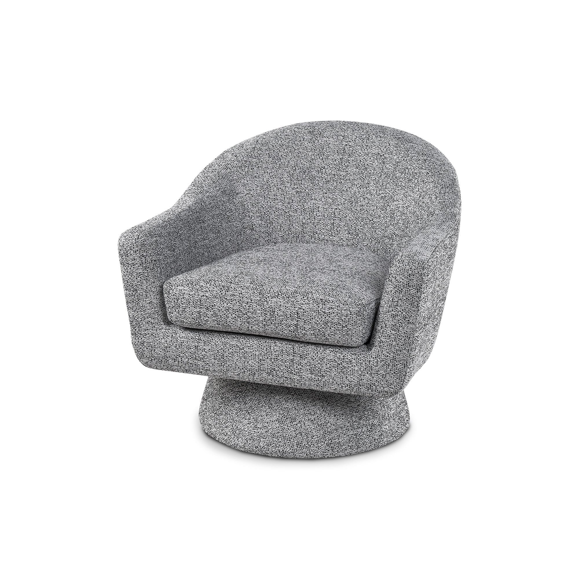 The Elma Occasional Chair in Talbot Freckle upholstery features a swivel base for playful movement and luxurious seating. Ideal for hospitality or residential spaces, it combines comfort with style.