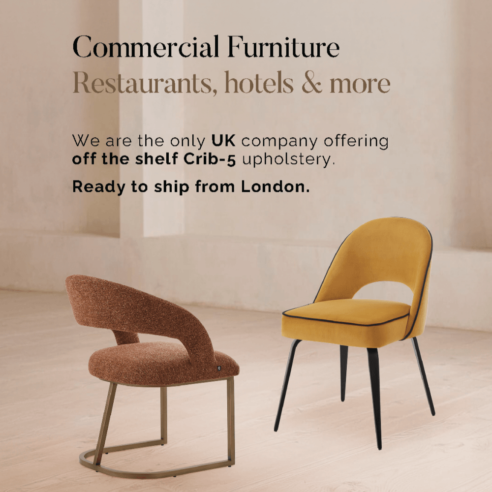 Each collection is designed with both residential and hospitality projects in mind, offering everything from statement seating and Crib 5–compliant upholstery to striking lighting and refined accessories.