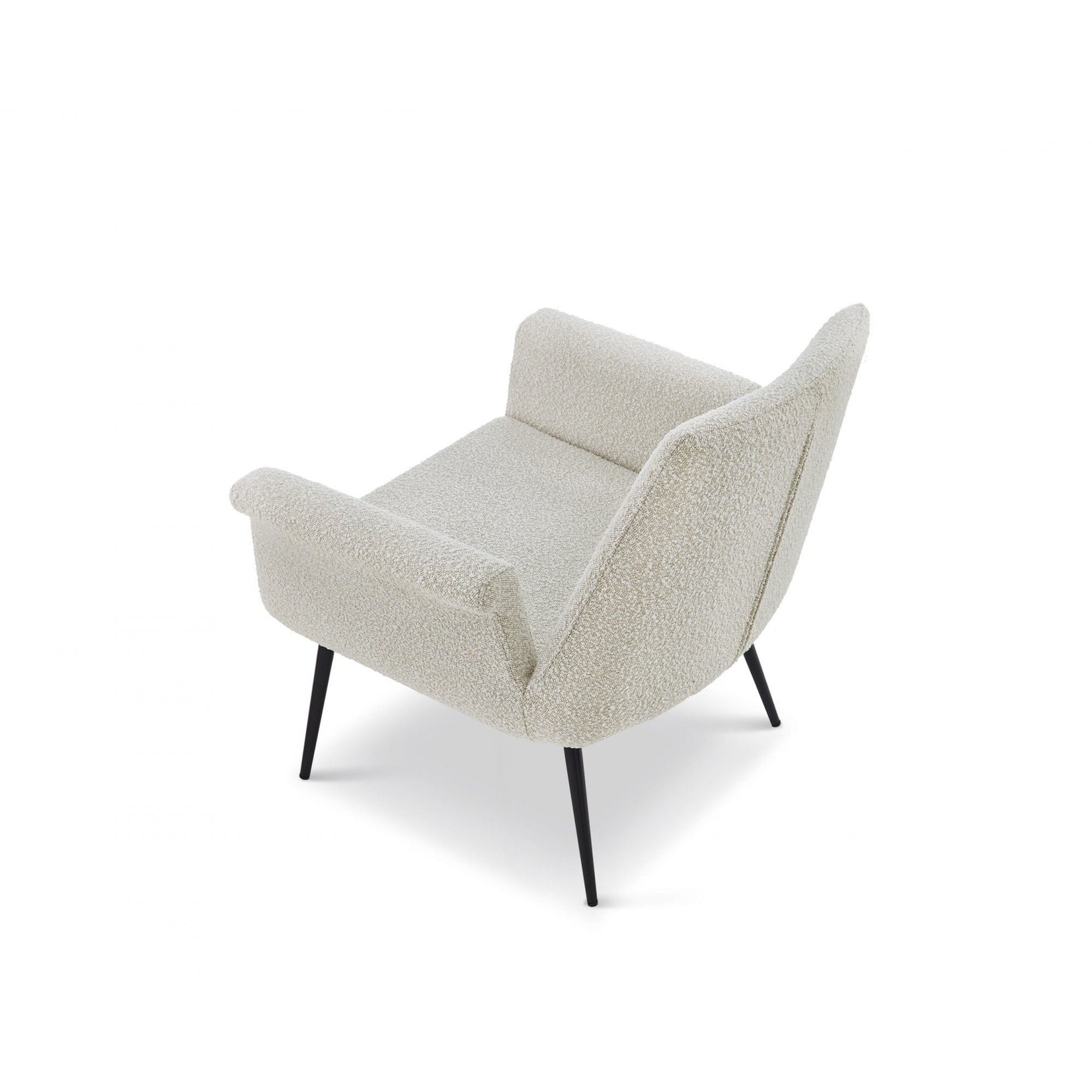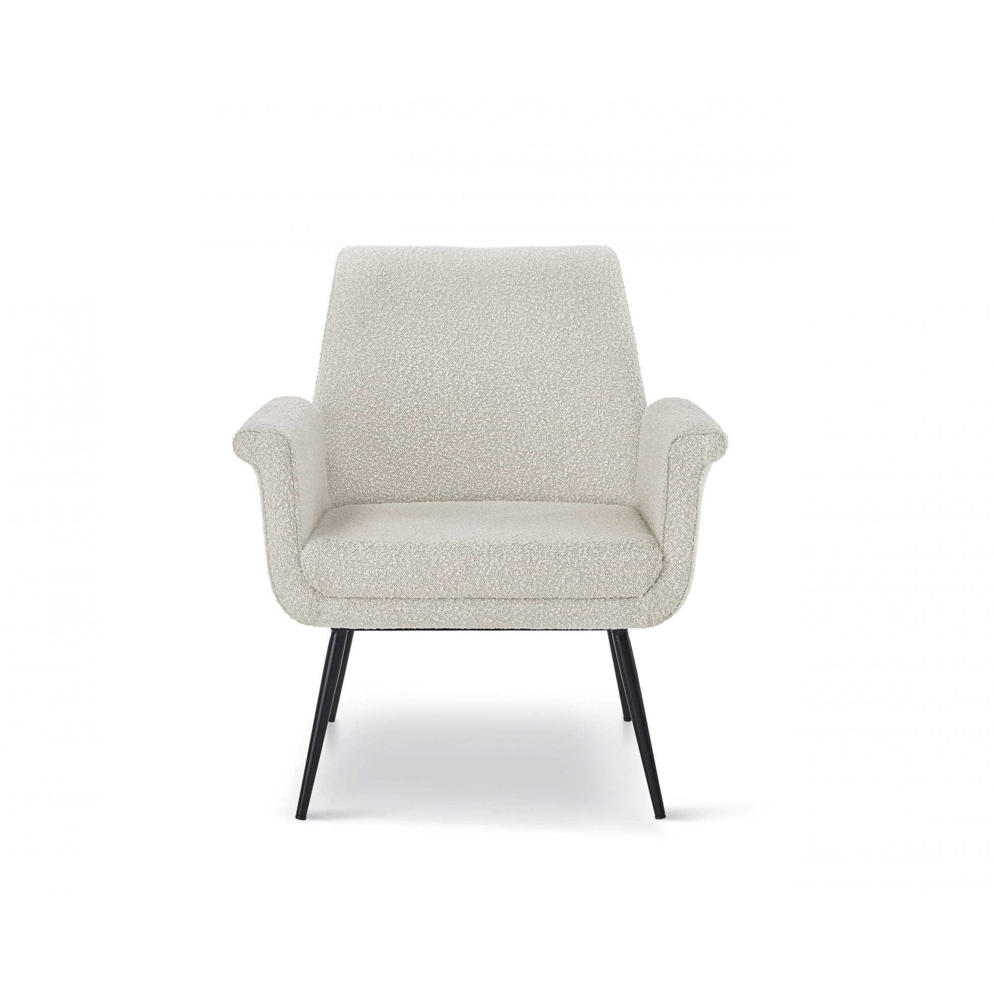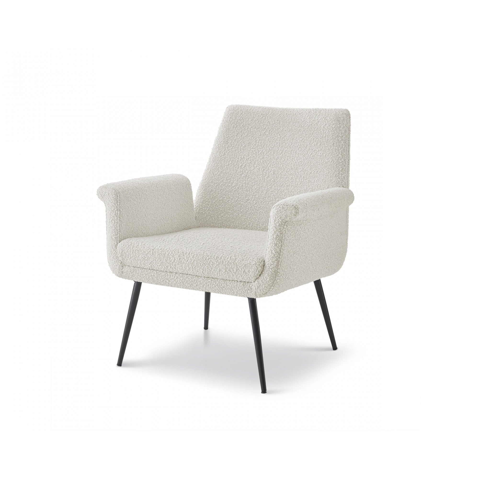 Nestle into comfort with the Fiore Boucle Chair, featuring textured upholstery and a elegantly curved silhouette supported by soft matte black legs. This timeless chair makes a bold design statement while providing ultimate relaxation.