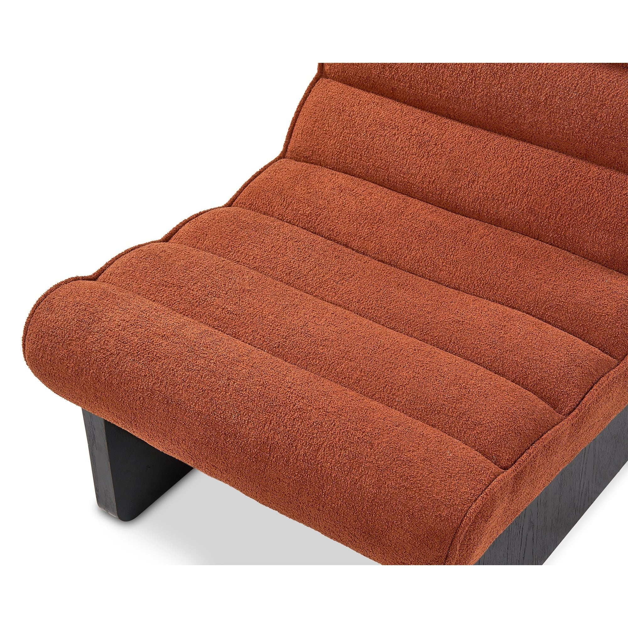 Introducing the Franklin Occasional Chair in Lander Rust - a stunning amalgamation of elegance and comfort. Upholstered in luxurious Channel-stitched Chenille, it radiates warmth and sophistication. The sleek Matt Black Base introduces a modern accent, making it ideal for any space, from chic bedrooms to inviting living rooms, offering refined charm wherever placed.