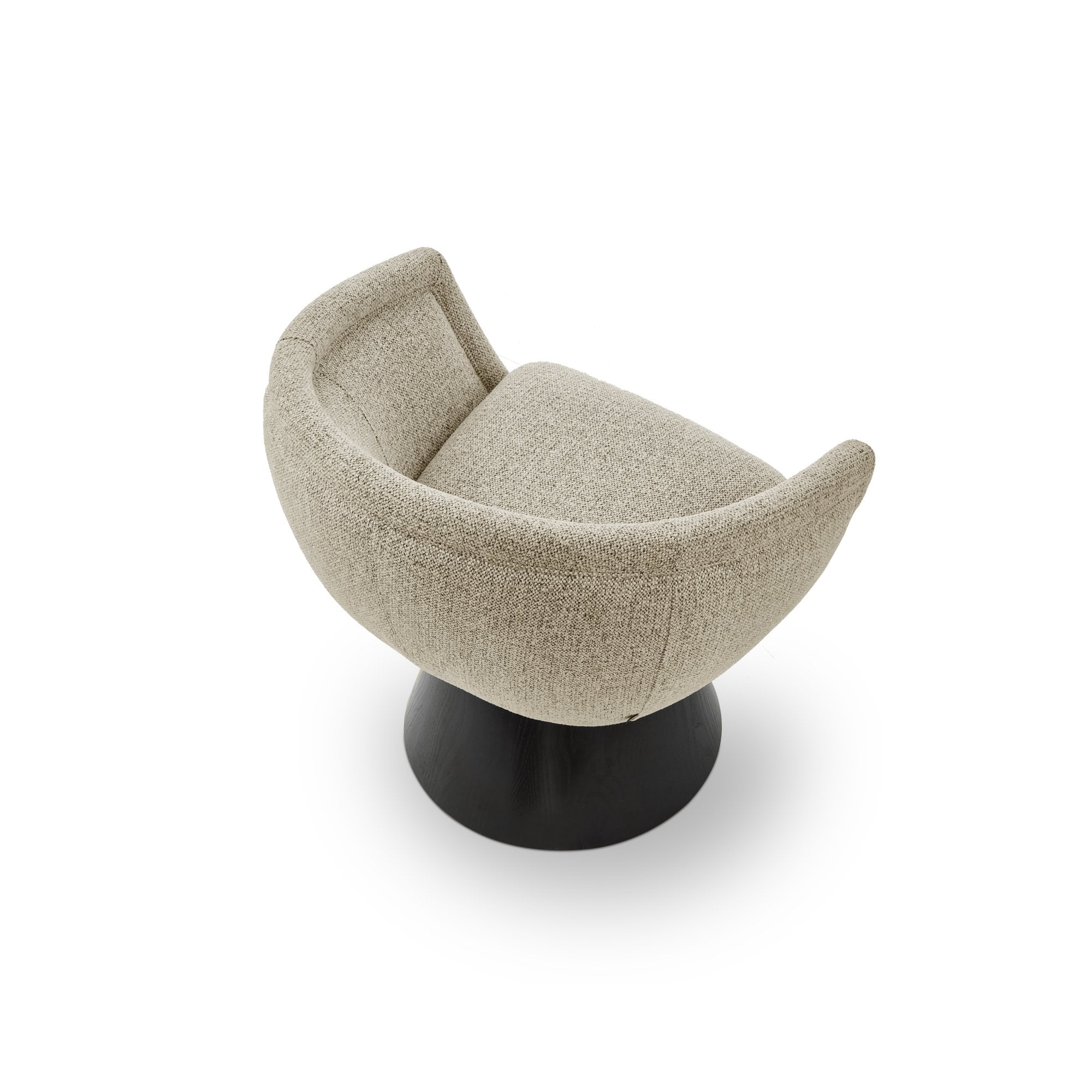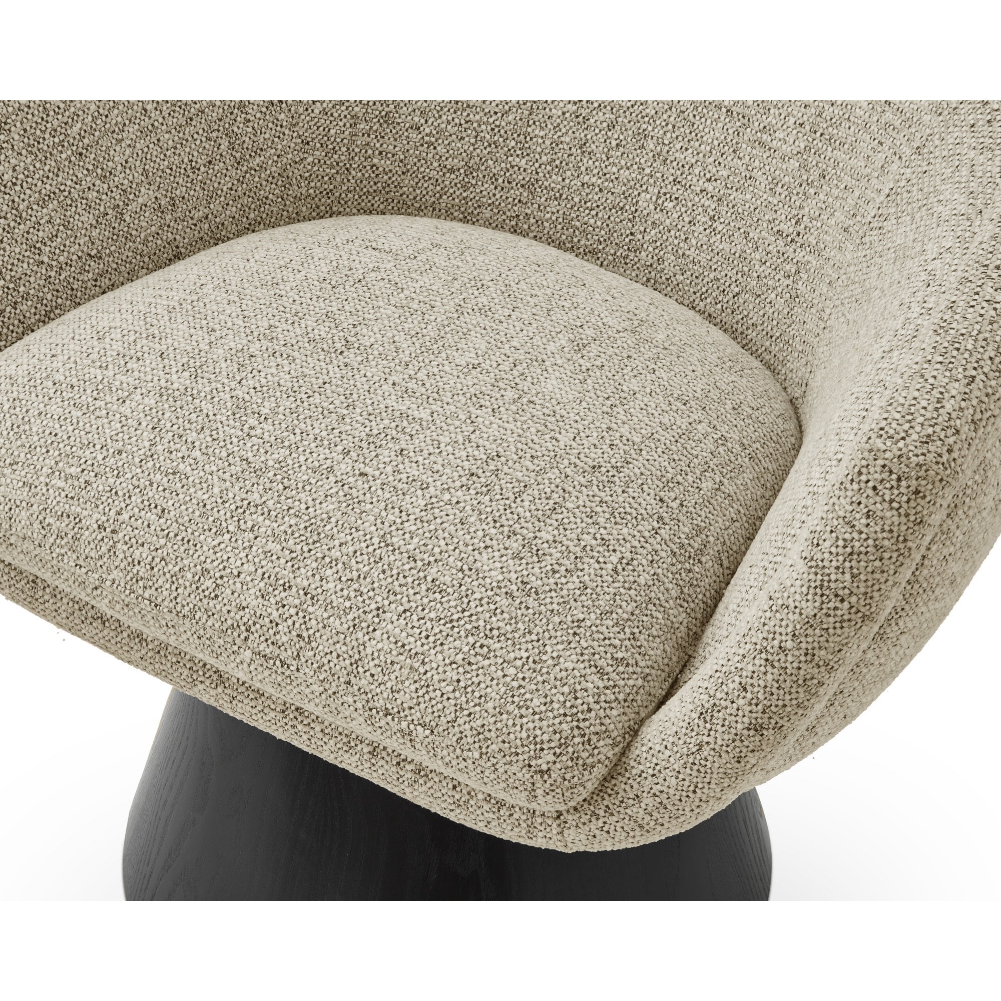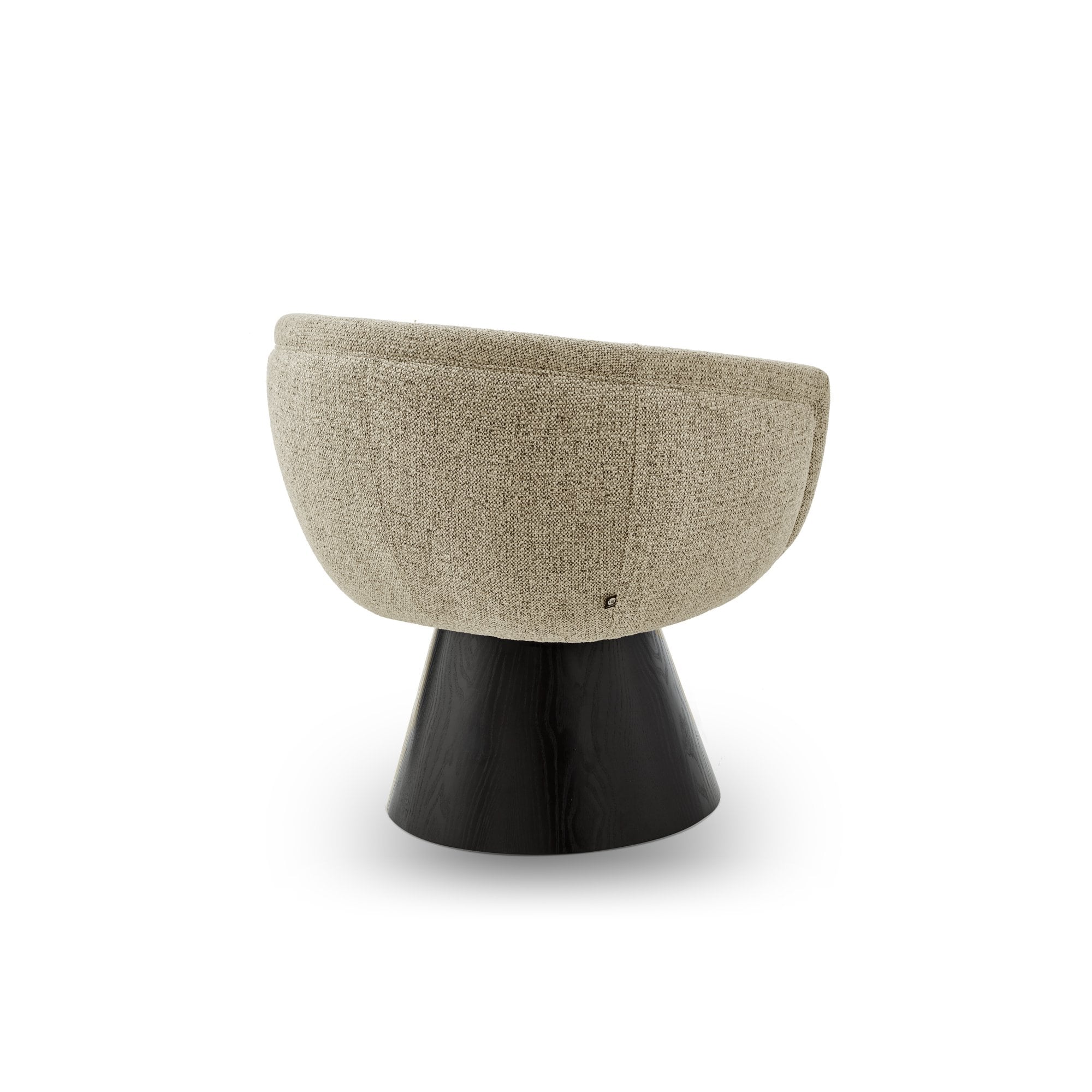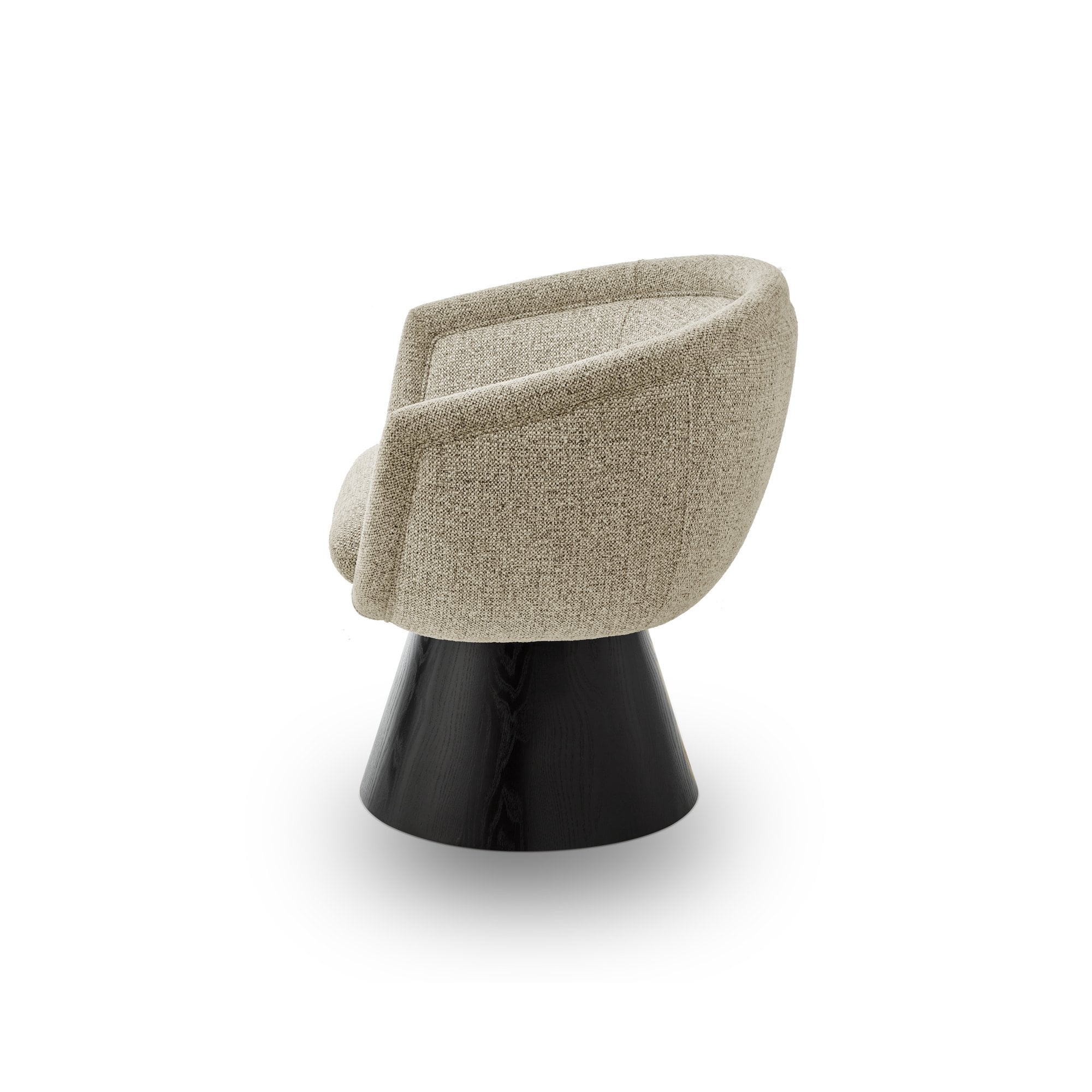 The Harriet Occasional Chair in Colmer Silver Grain captivates with its unique textured fabric crafted from recycled materials. The elegantly curved backrest and smooth seat provide comfort and style, while the conical base in matt black ash veneer adds an unexpected twist. Its versatile charm makes it perfect for both residential and hospitality settings.