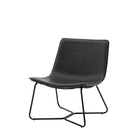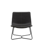 This contemporary occasional chair embodies both comfort and style. Its chic design features a curved seat, upholstered in faux leather, and sleek black metal frame. It is available in two other colours, and matching dining chairs and stools are available.