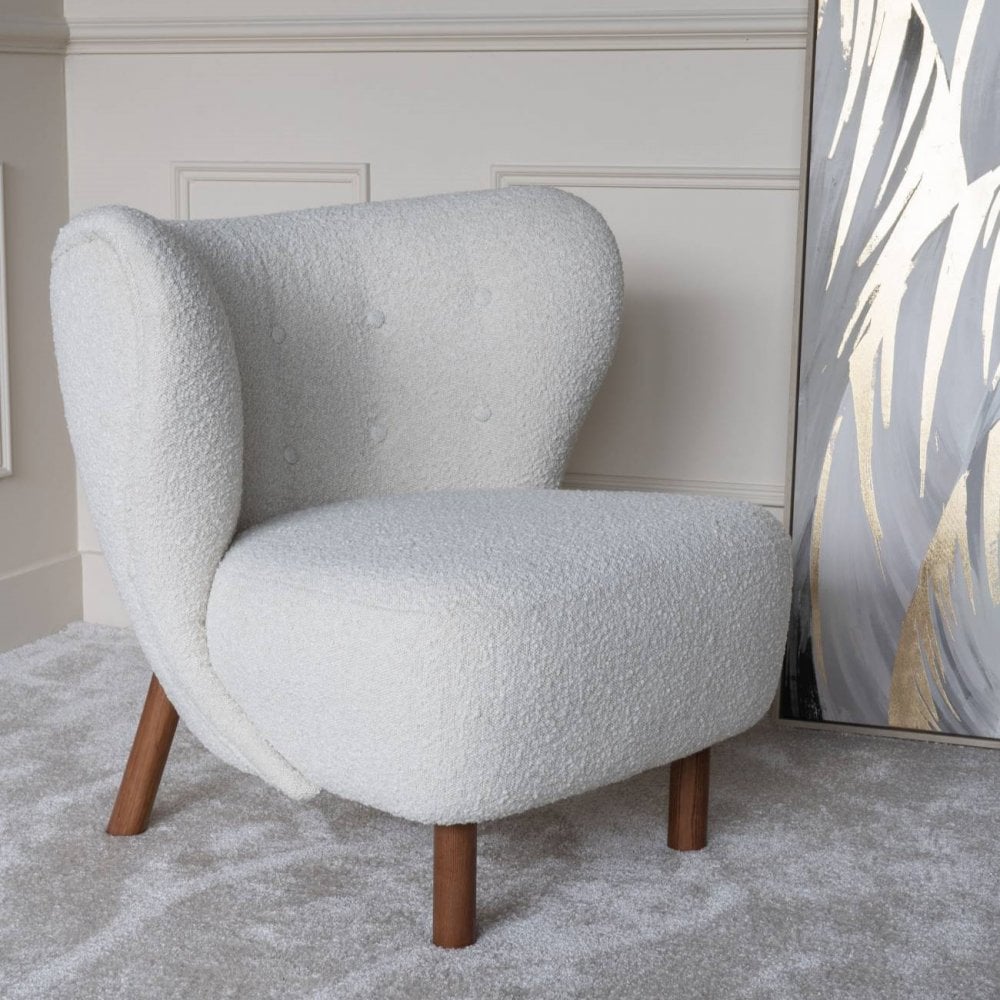 Our Lewis Wingback Occasional Chairs are a modern twist on a traditional chair design. Upholstered with a hardwearing, contemporary boucle, this chair is small on footprint but big on comfort. The Lewis chair has a low but generous seat and features complimentary buttoning and piping and sits on a sturdy solid wooden stained frame. Available in other boucle colours.