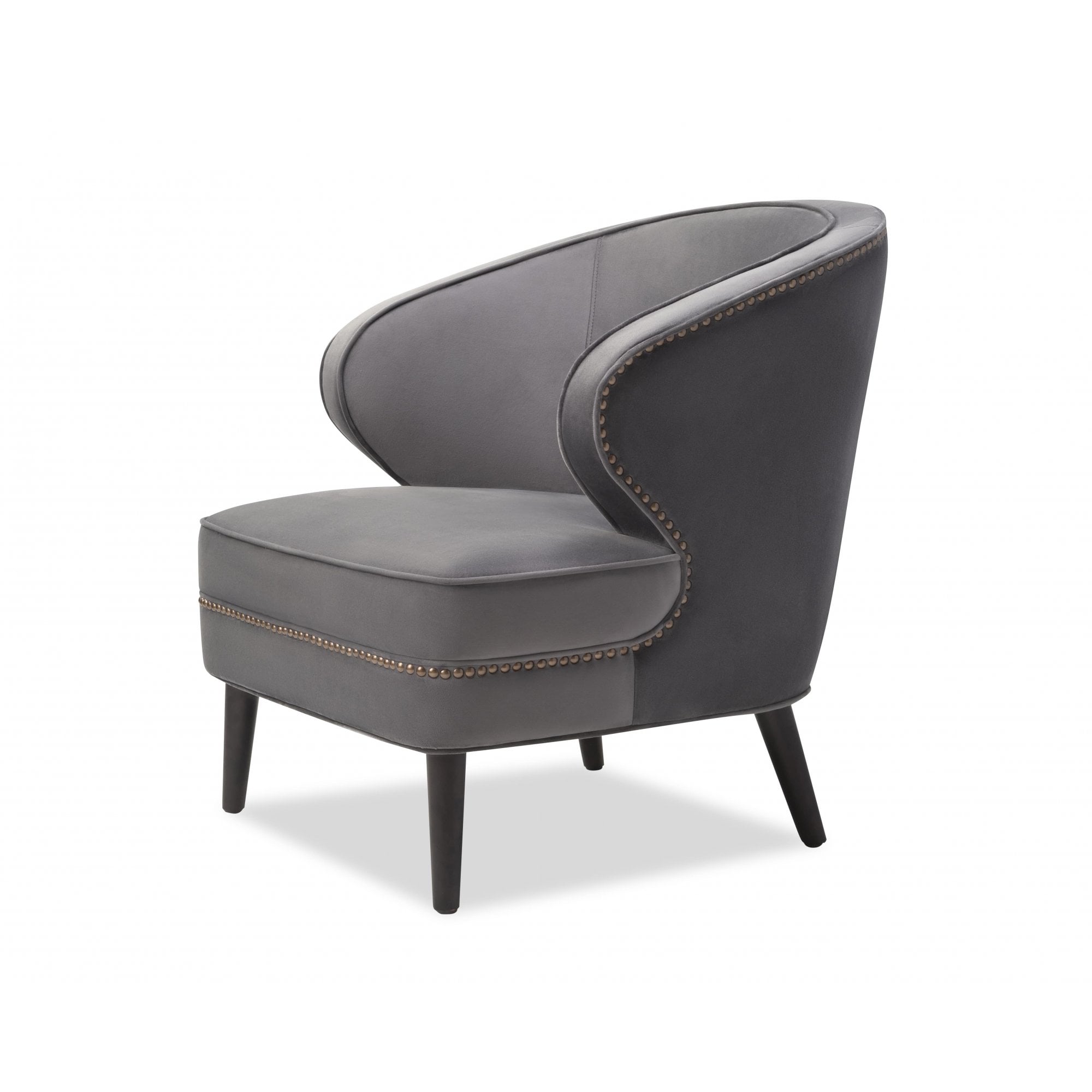 Meet the Lindsay Occasional Chair, an impressive addition to your living space that boasts beautiful curves and a tapered wenge wood leg design with bronze nail head trim. This versatile chair effortlessly complements eclectic, industrial, or modern-rustic themes while being available in a range of lush velvet upholstery. Perfect for enhancing various decor styles, the Lindsay offers both comfort and sophisticated allure. Elevate your interior with this stunning piece, creating a welcoming atmosphere for gatherings or quiet moments.